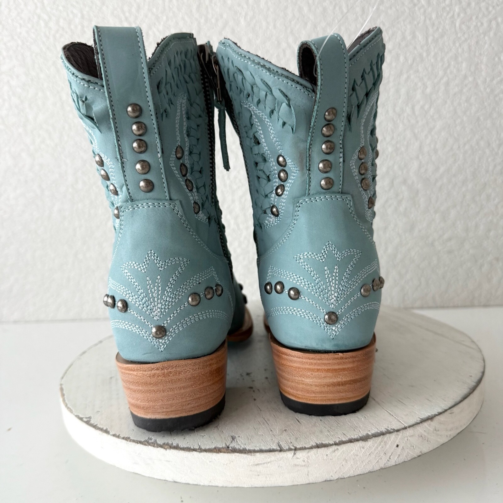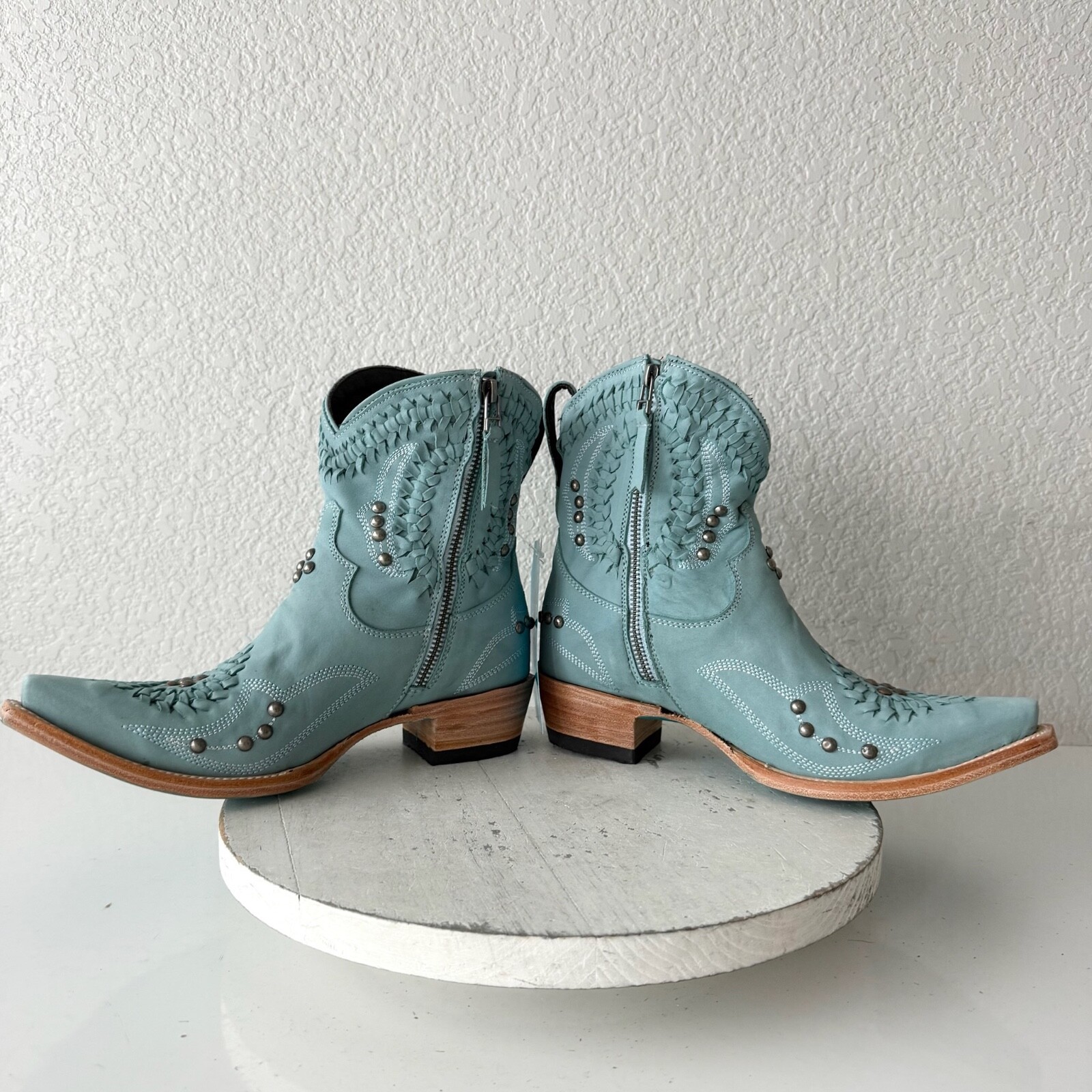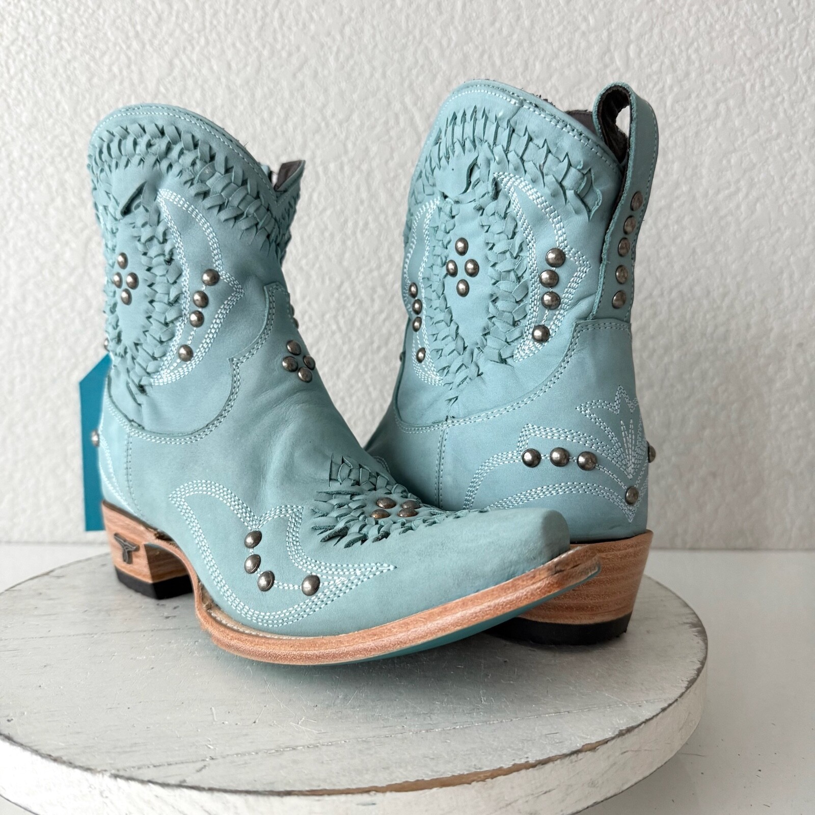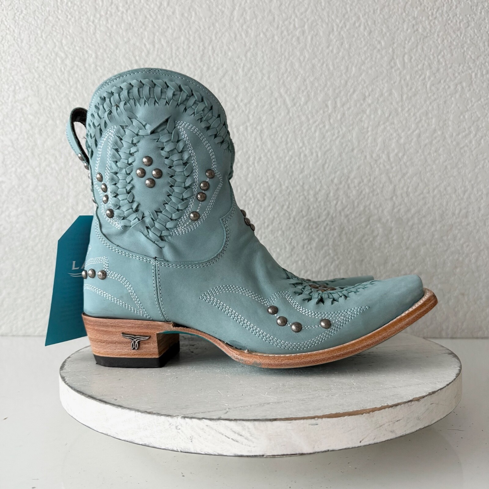 Lane COSSETTE Womens Cowboy Bootie 7 Blue Leather Cowgirl Western Ankle Boots