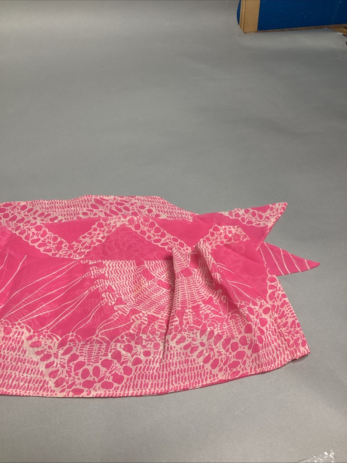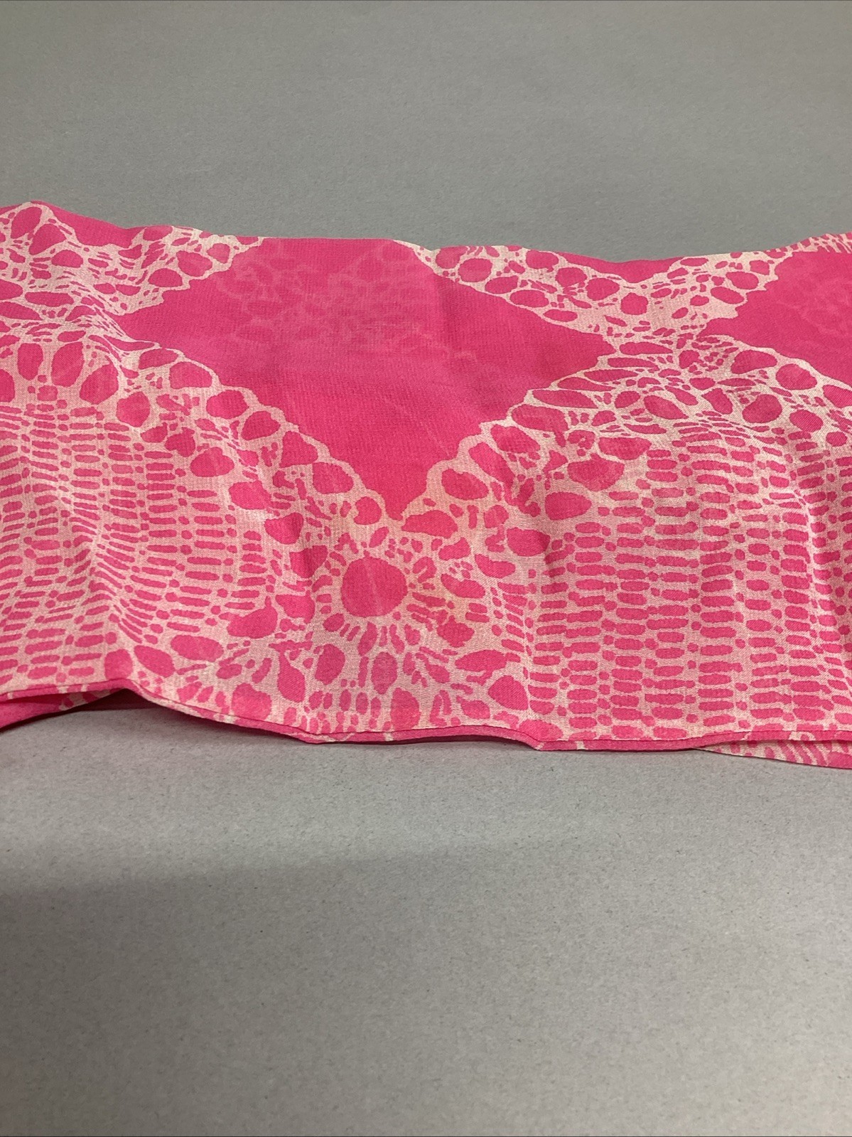 Geometric Design Pink Silk Scarf - 96x6?. Overall in good condition. I did notice a couple areas of discoloration/stains.