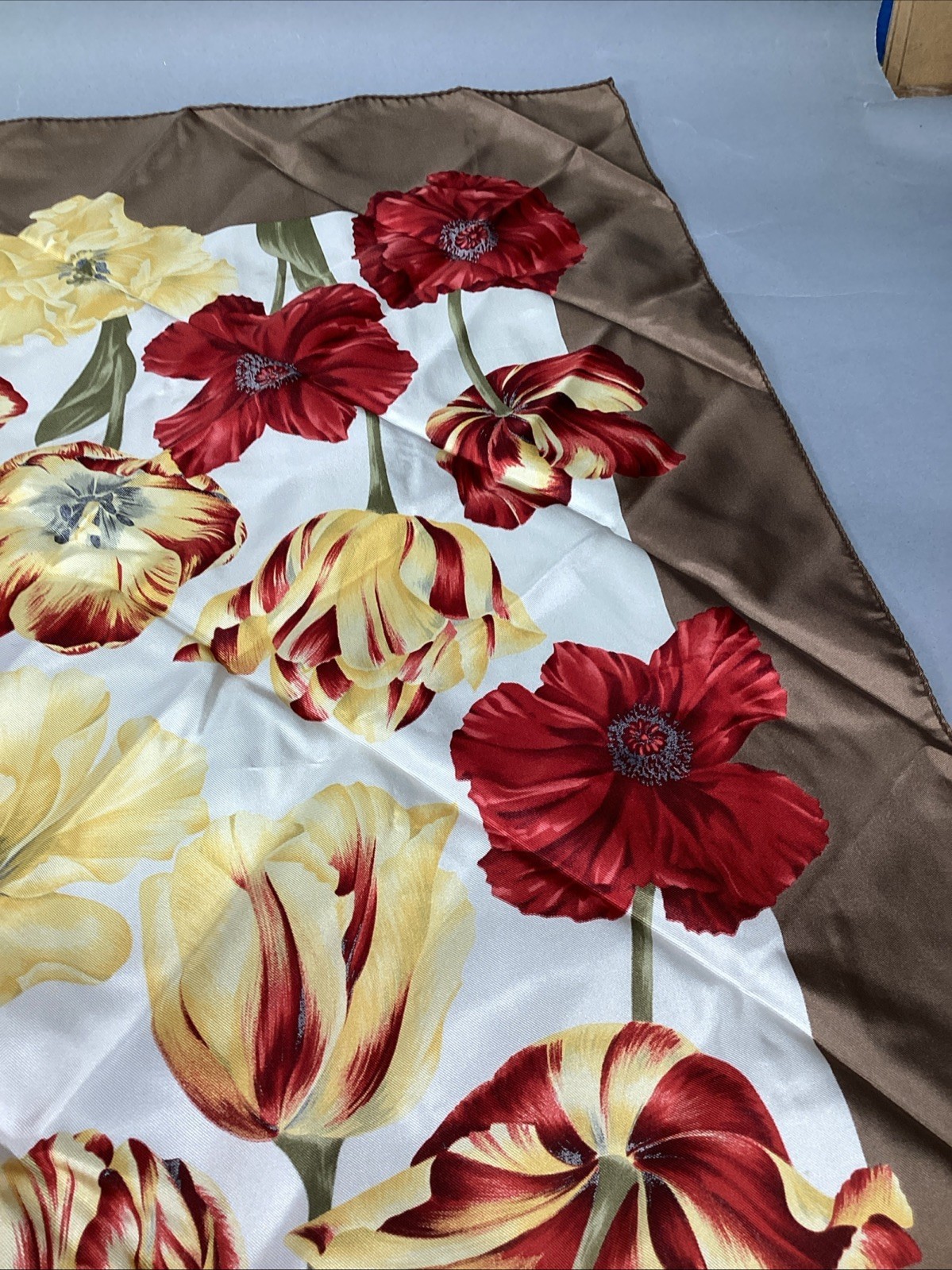 Vibrant 100% Silk Red Yellow Floral Scarf - 33x33?. In good condition