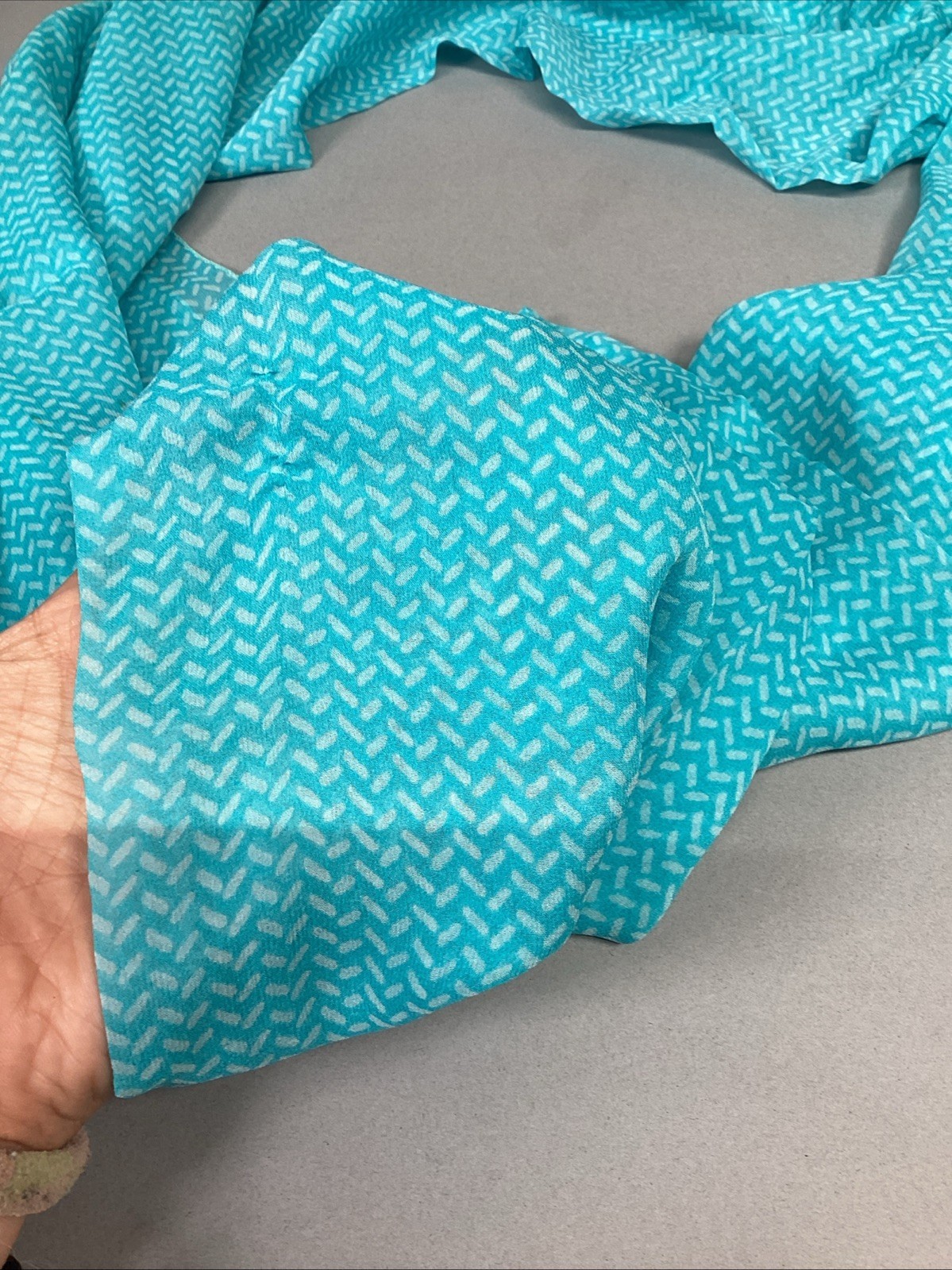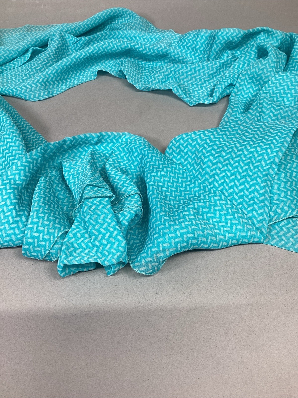 100% Silk Teal W/ White Women?s Scarf - 80x25?. In good condition overall, however, I did notice a couple of stains in the material.