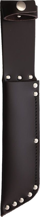 Overall: 12.25"; Blade: 7" l Carbon Steel l Standard Edge; Handle: Synthetic; Other Info: Full Tang. Black phosphate coated carbon steel blade. Black finish steel guard. Black fiber handles. Black leather belt sheath. Boxed.