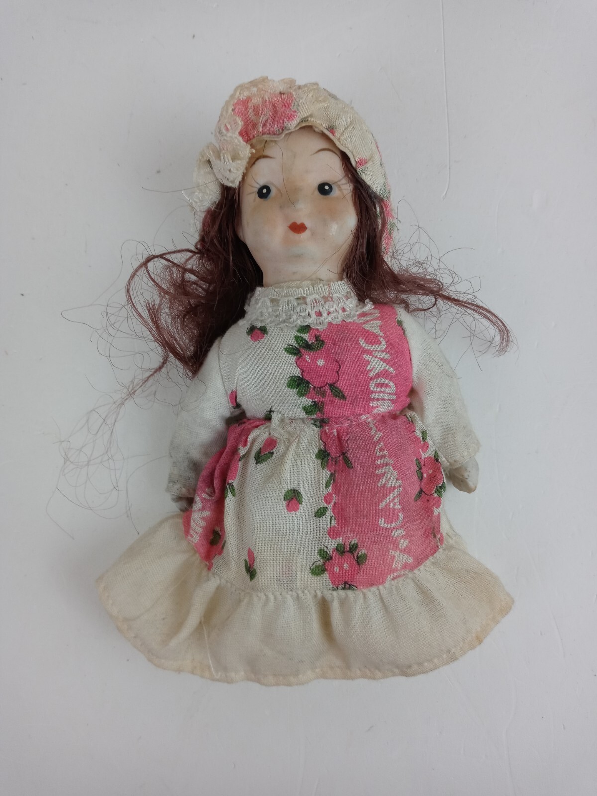 Vintage Porcelain Face and Hands Cloth Body Doll 6"
