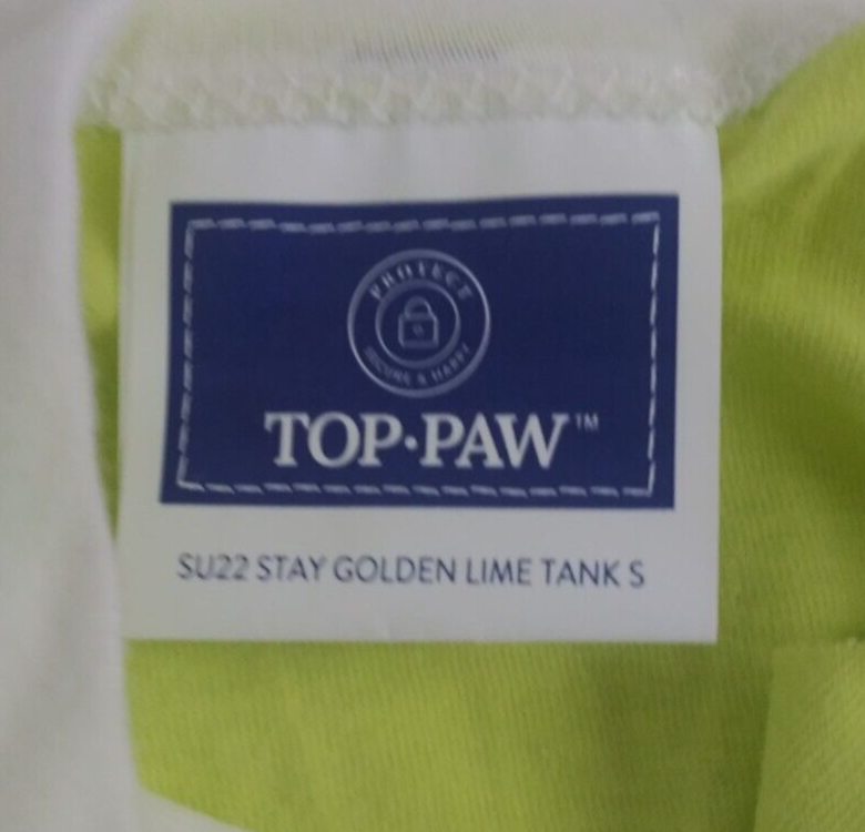 This is for a NWT Top Paw Stay Golden Lime Tank Dog Size Small.
