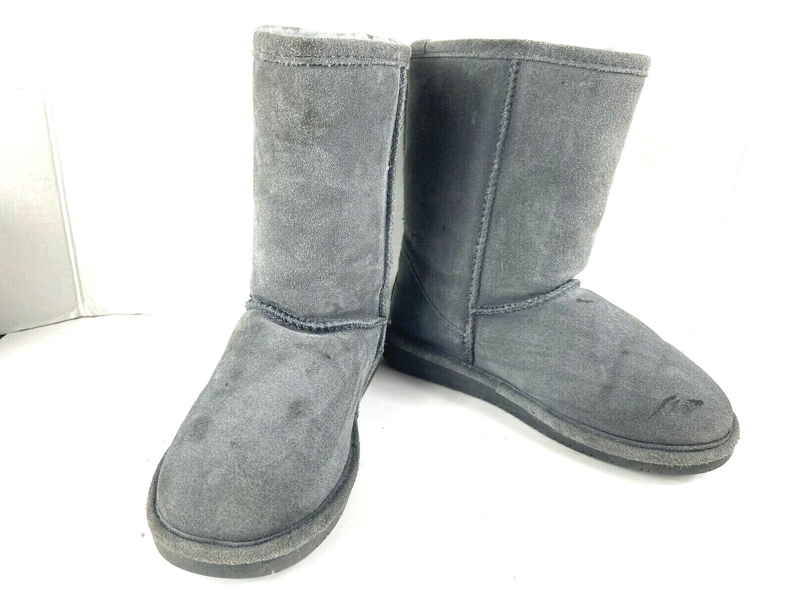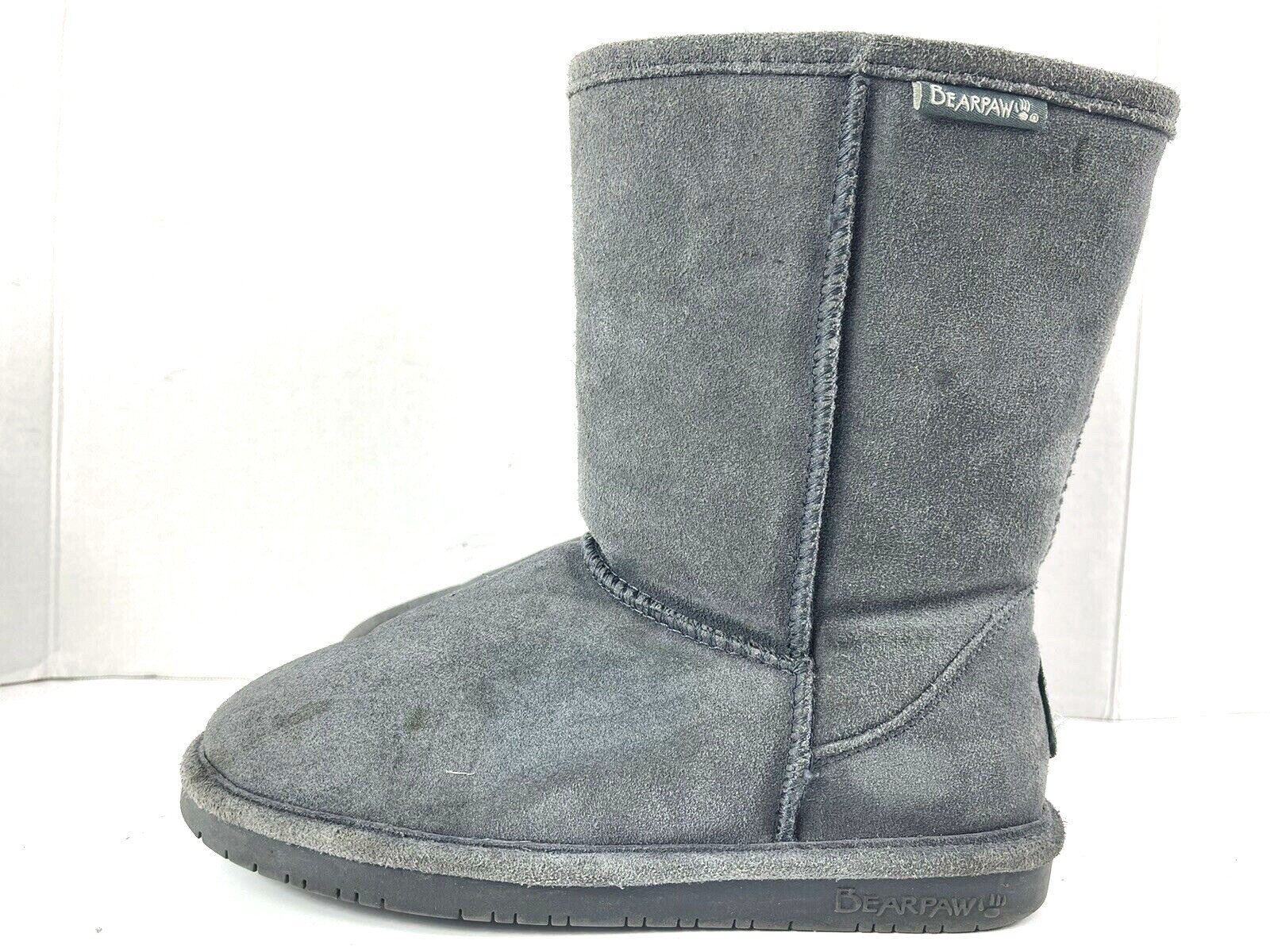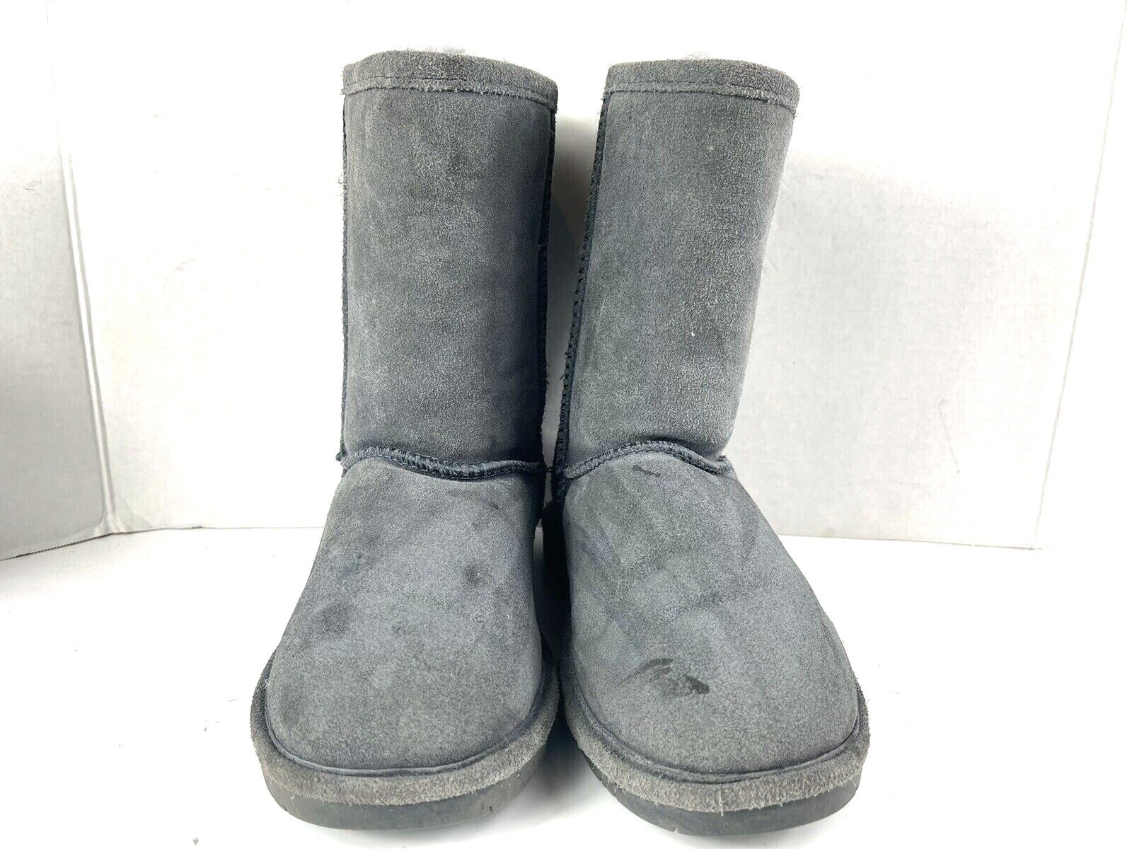 BEAR PAW Boots Women 6M Emma Short Shoes Grey Leather Suede Sheepskin Winter