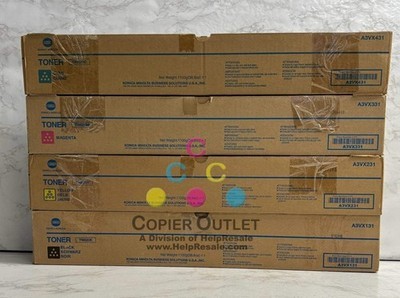 4 New Genuine Konica TN620 CMYK Cyan, Magenta, Yellow Black Toners Cyan TN620C A3VX431 x 1Magenta TN620M A3VX331 x 1Yellow TN620Y A3VX231 x 1Black TN620K A3VX131 x 1 New Same Day Shipping For Konica Minolta AccurioPrint C2060L, C3070L, C4065 BH Pro C1060L Listed By: Renee (Sales Team) ?some times money can help to buy happiness...you just gotta know where to shop? -RRW (A positive moment brought to you by Help Resale) Copier Outlet (A Division of Help Resale) Copier Outlet was established in 1993. We buy and sell both domestically and internationally and have wide assortment of copiers, consumable and accessories of all popular brands. All of our copiers are in house and available for your inspection. They all have been tested and rated for functions, cosmetics and overall appearance. Our consumable and accessories selections include toners, imaging units, developers and copier parts such as fax board, fixing unit, fuser unit, roller, cleaning brush, drum blades and etc. For more detailed information on our copiers, consumables and accessories, please feel free to give us a call. We are more than happy to assist you with the pricing and guide you to find the copiers, consumable and accessories you wish to buy. Best Regards, Copier Outlet Sales Team Monday - Friday: 9:00 am to 5:00 pm (PST) Copier Clearance Center Promo Video - YouTube Video will open in a new windowUsing the App? Paste link into a browser window: [isdntekvideo] All product and company names are trademarksTM or registered trademarks of their respective holders. Use of them does not imply any affiliation with or endorsement by them.