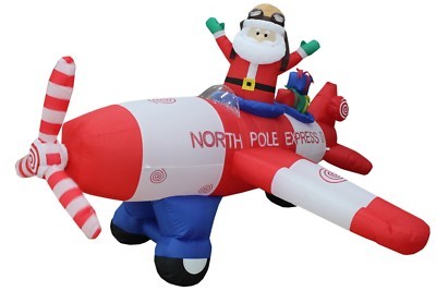 8 Foot Long Animated Lighted Inflatable Christmas Santa Claus Flying Airplane