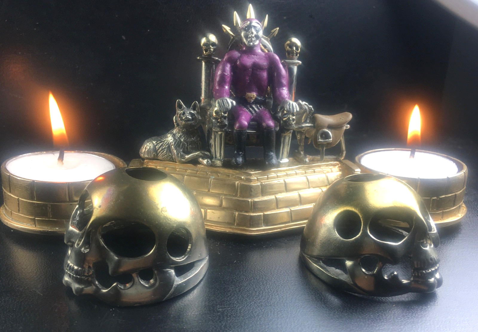 Custom The Phantom 2 tone Bronze Candle lit skulls statuette