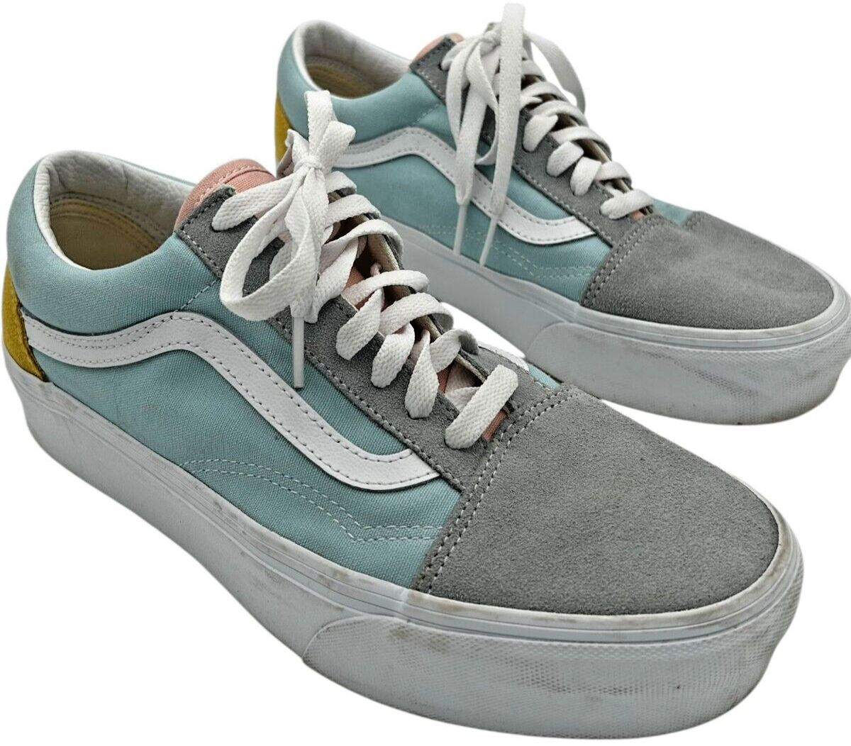 Vans Old Skool Sk8 Low Yacht Club Suede Shoe Women Size 9.5 Blue/Grey/Yellow/Pink