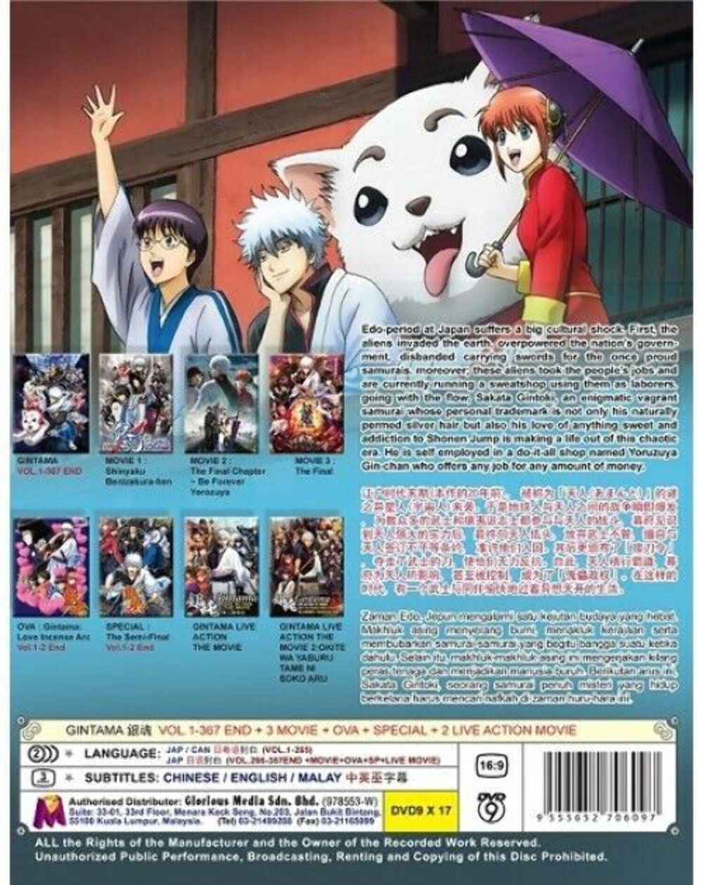 GINTAMA Vol.1-367END+3 Movie+OVA+Special+2 Movie ENG SUB SHIP FROM USA