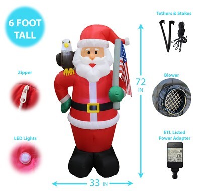 6 Foot Tall Christmas Inflatable Santa Claus Eagle American Flag Yard Decoration