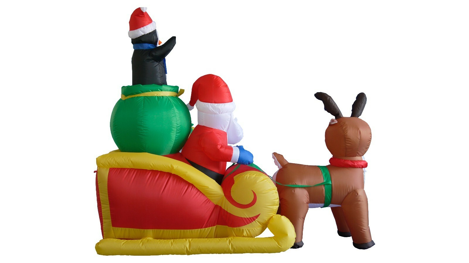 6 Foot Long Lighted Christmas Inflatable - Santa Claus on Sleigh with Reindeer and Penguin
