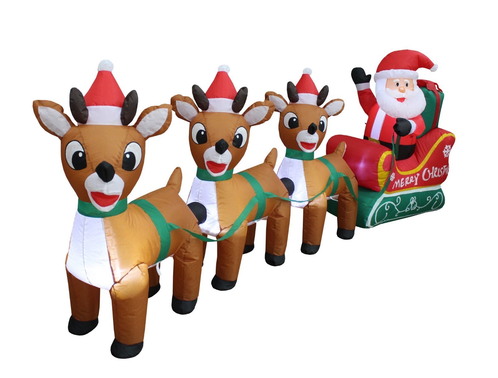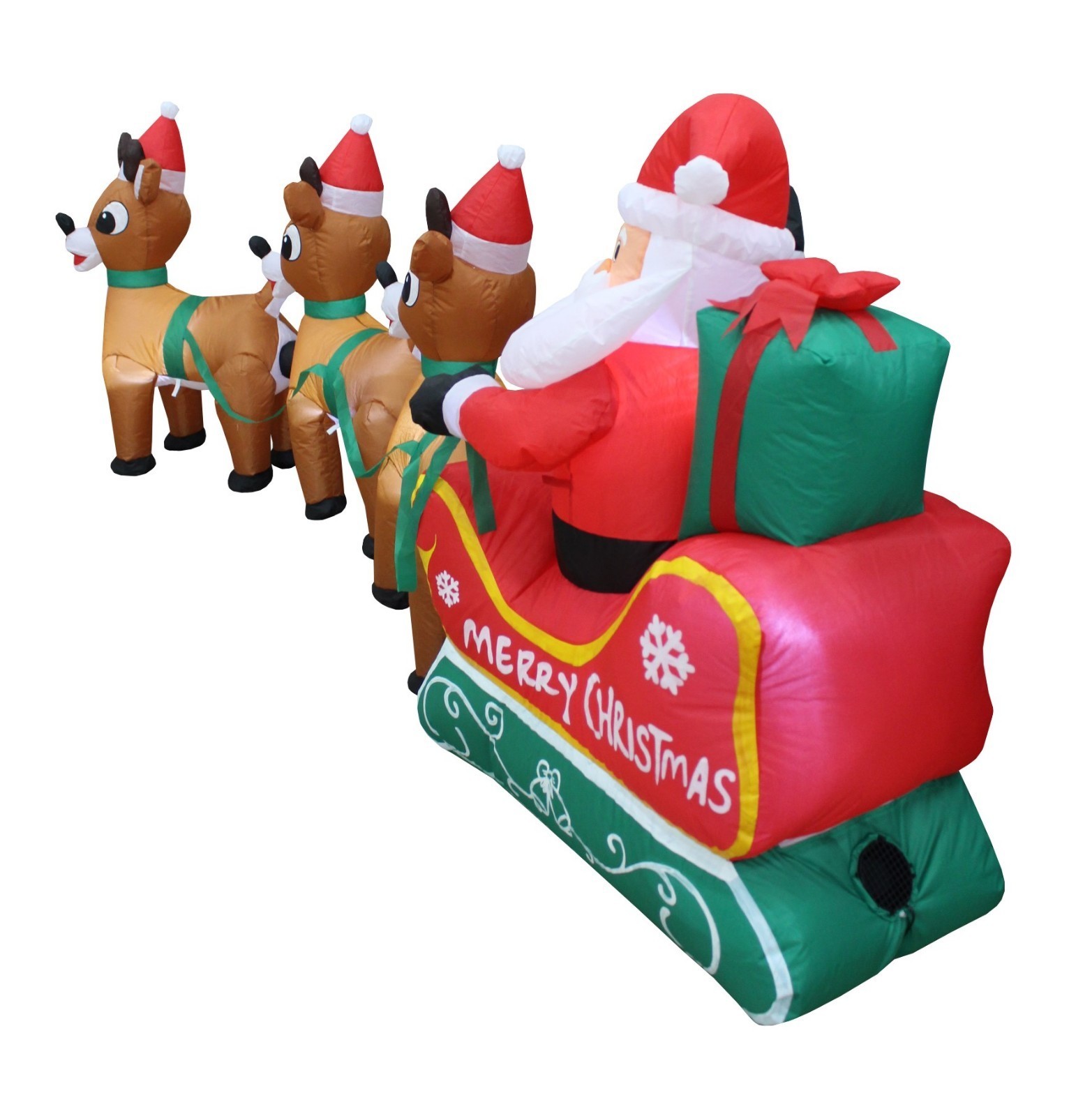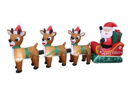 8 Foot Tall Lighted Christmas Inflatable Santa Claus on Sleigh with Three Reindeer Yard Party Decoration