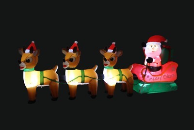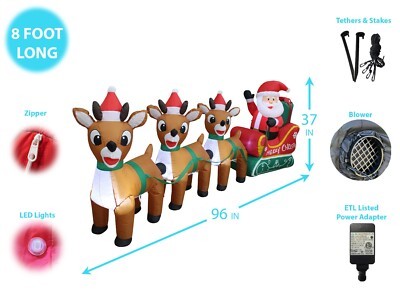 8 Foot Long Christmas LED Inflatable Santa Sleigh Reindeer Yard Party Decoration