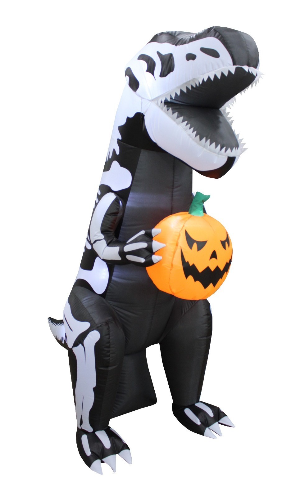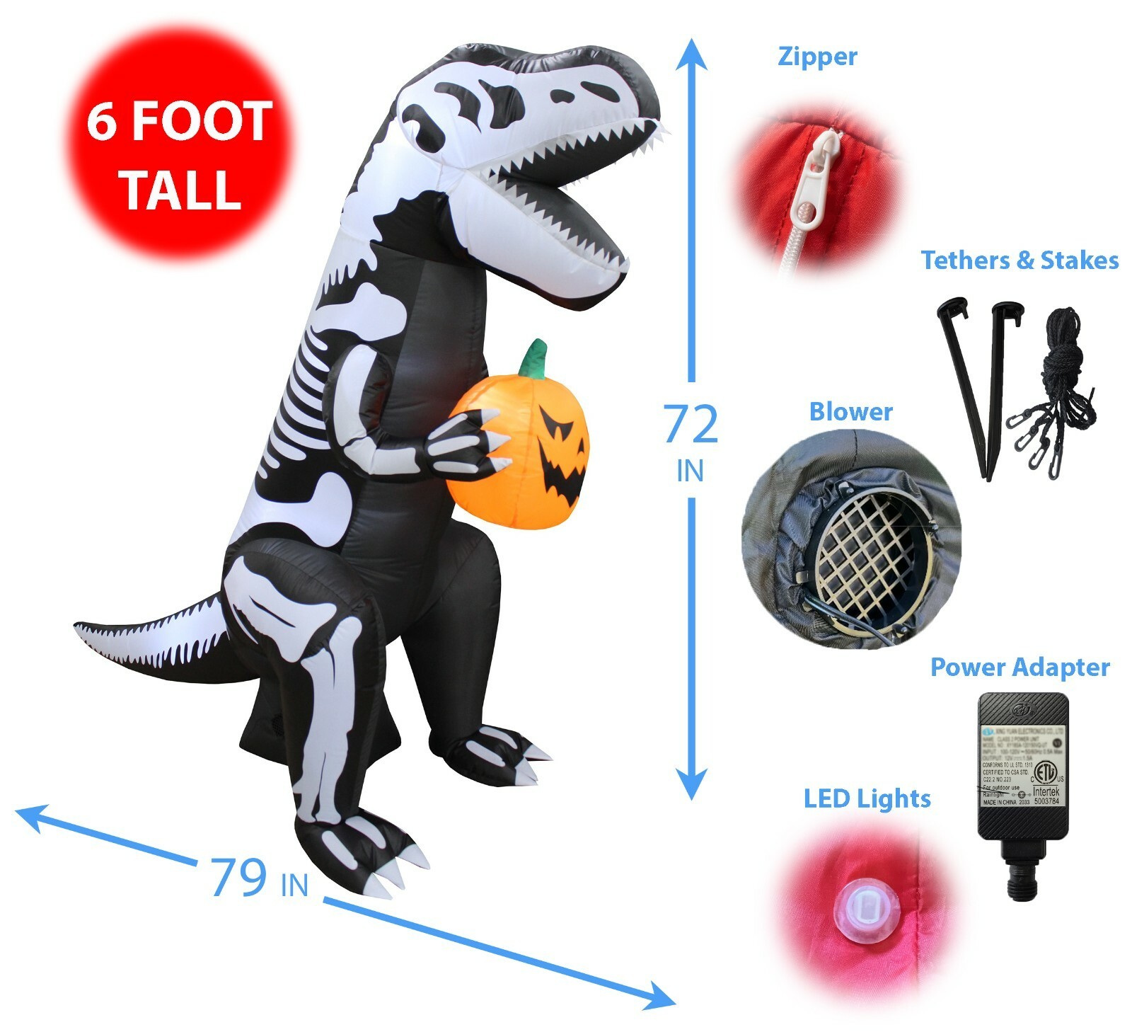 6 Foot Tall Halloween Inflatable Skeleton T-Rex Dinosaur Pumpkin Yard Decoration