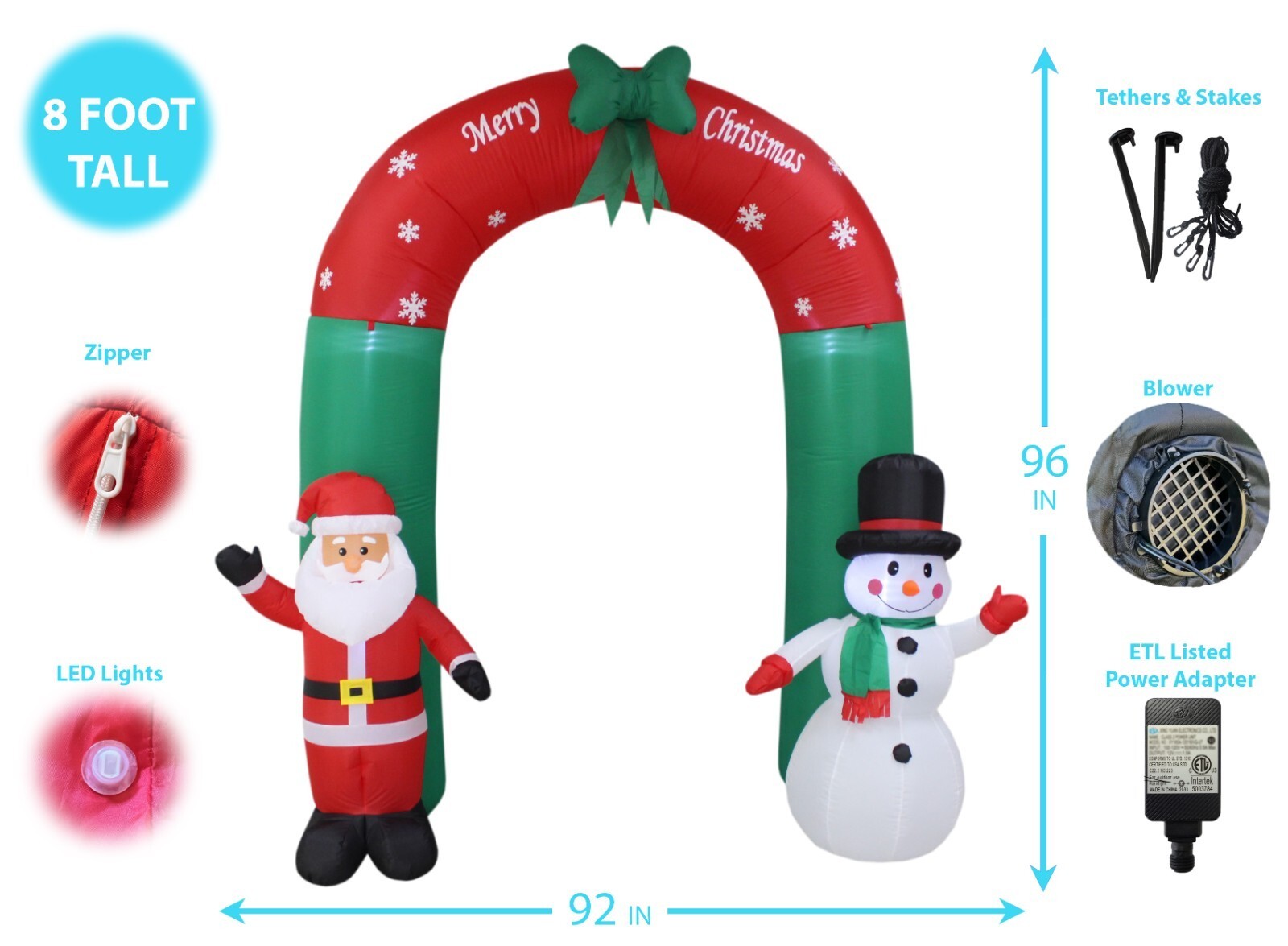 8 Foot Tall Christmas Inflatable Santa Claus Snowman Archway Outdoor Decoration