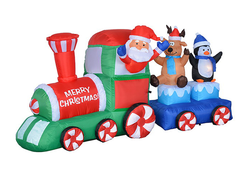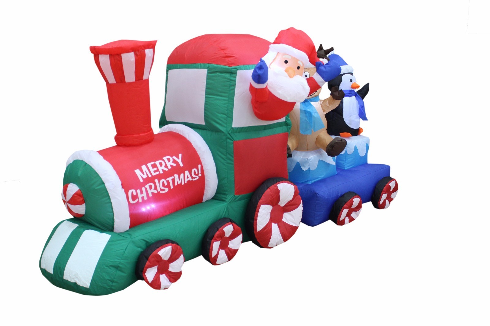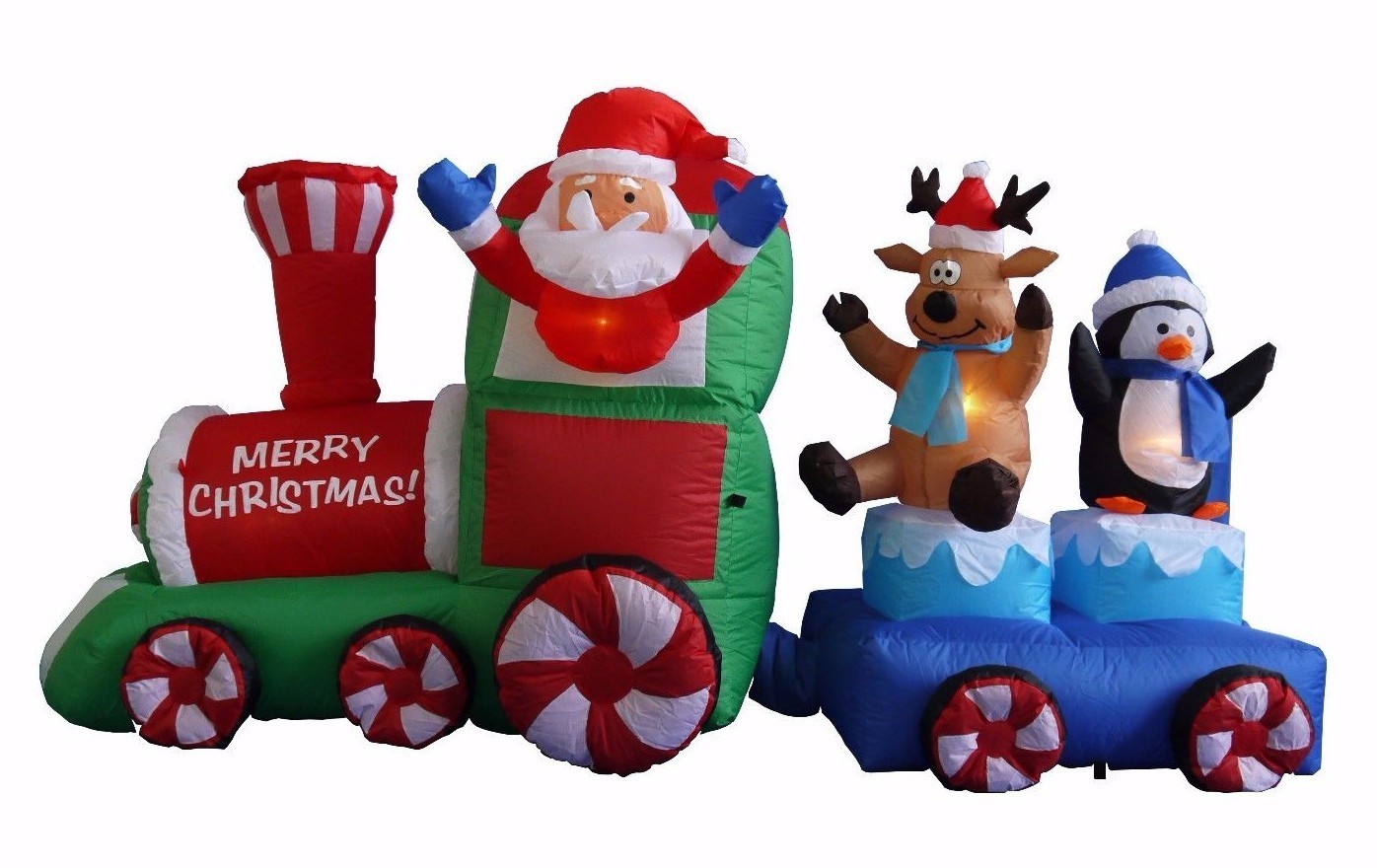 7 Foot Long Lighted Christmas Inflatable Santa Claus, Penguin and Reindeer on Train