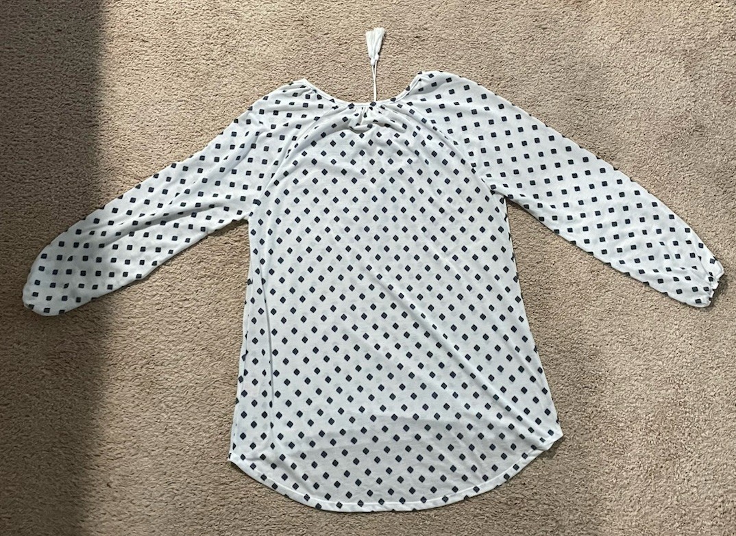 Faded Glory Long Sleeve Shirt Top Womans Large (12-14) White Black Paisley Blous