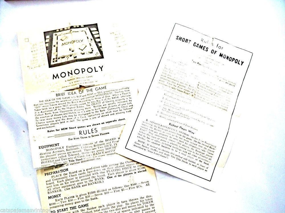 Vintage Monopoly Game incomplete BUT NO BOARD circa 1936
