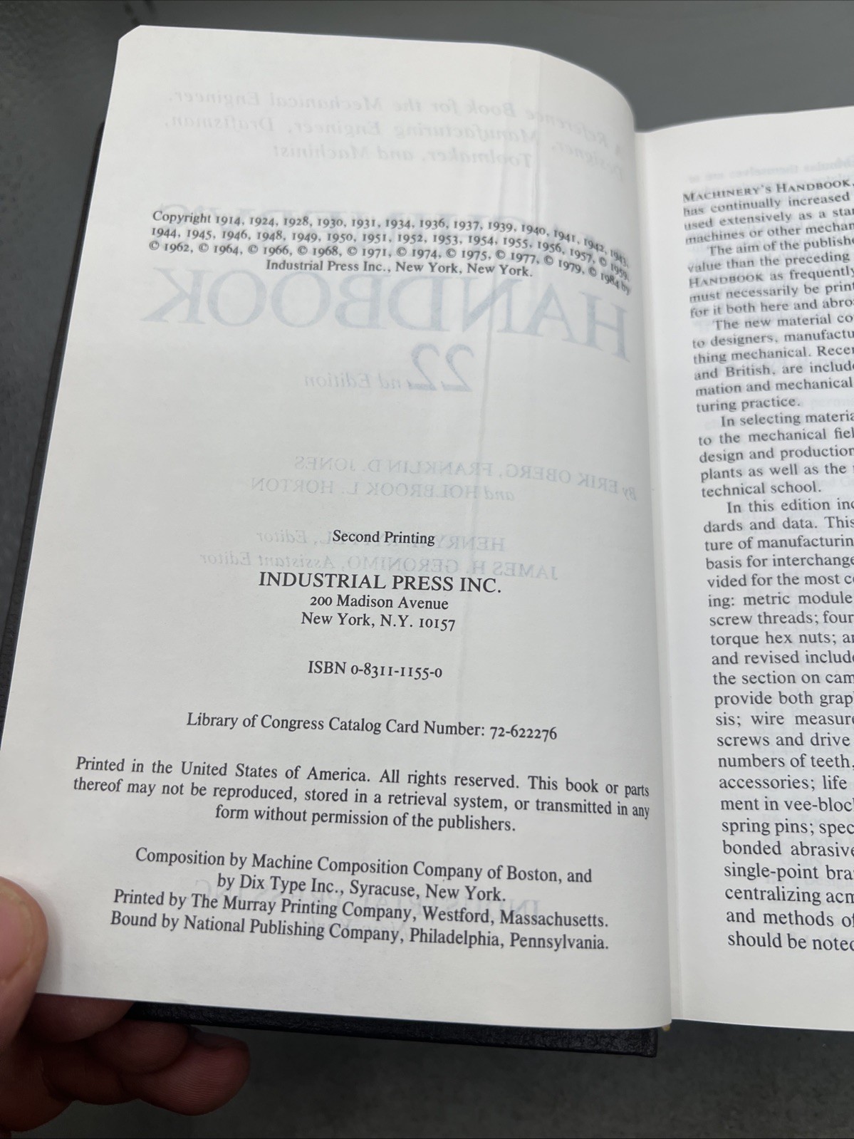 Vintage 1984 Machinery's Handbook 22nd Edition