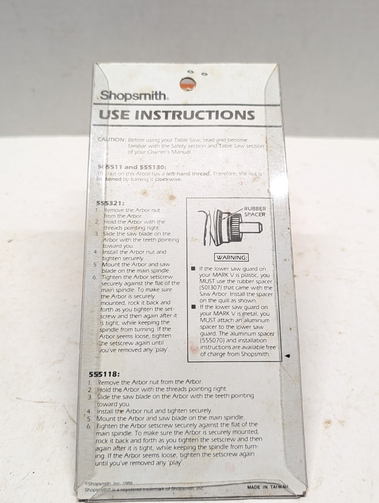 Shopsmith 555130 Saw Blade Arbor 1 1/4" Model 510