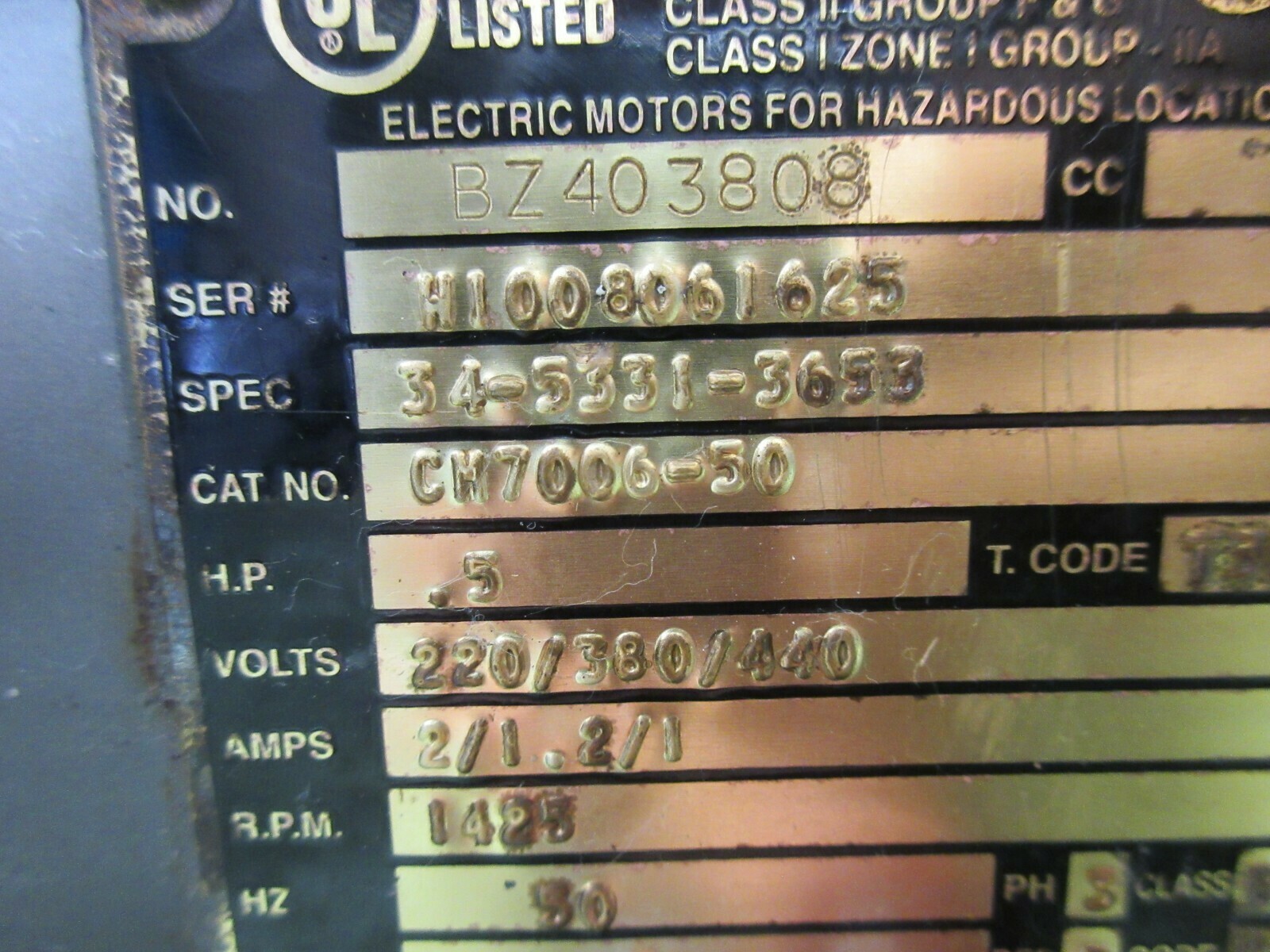 Baldor Moteur Pompe Hydraulique BZ403808 4-3331-3653 CM7006-50 34 5331 3653