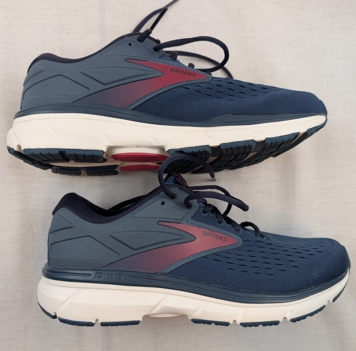 Up for sale is a pair of Brooks Dyad 11 Running Shoes - Women's 11 B - Blue/Navy/Beet Root