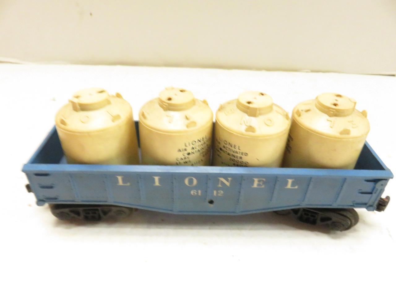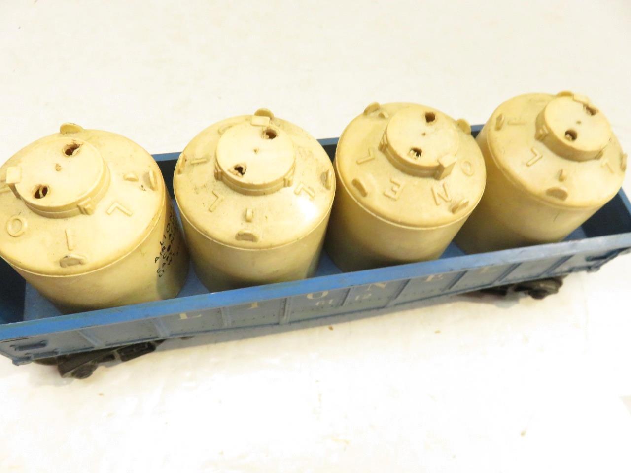 LIONEL POST-WAR - 6112 BLUE GONDOLA W/CANNISTERS 027- FAIR - S31EE