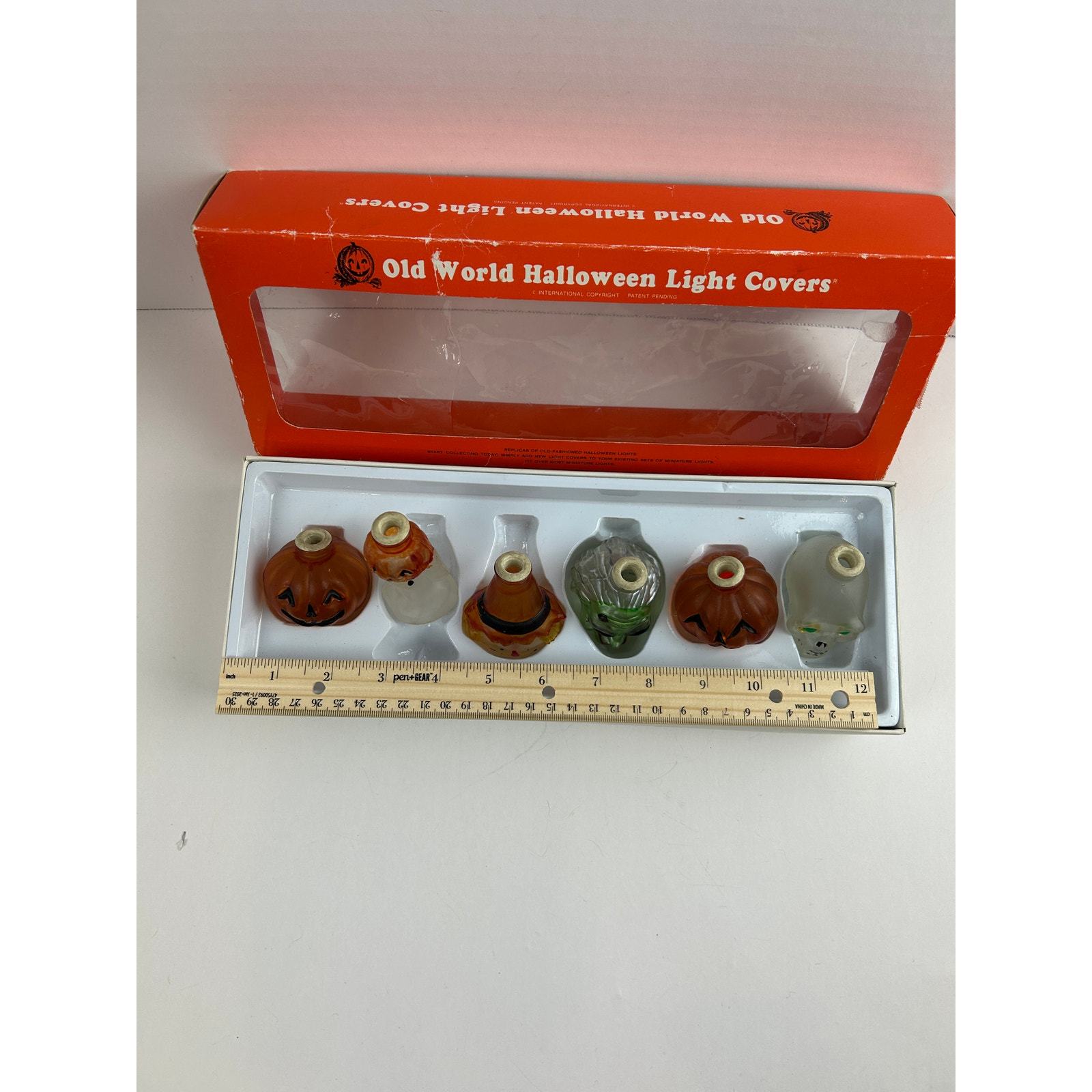 Old World Halloween Light Covers Set of 6 – Pumpkins, Ghost, Witch, Skull– 1990s