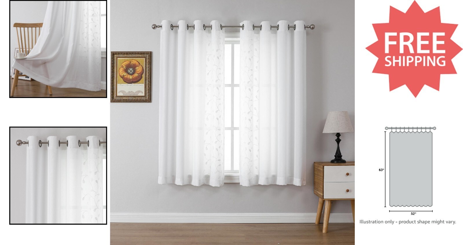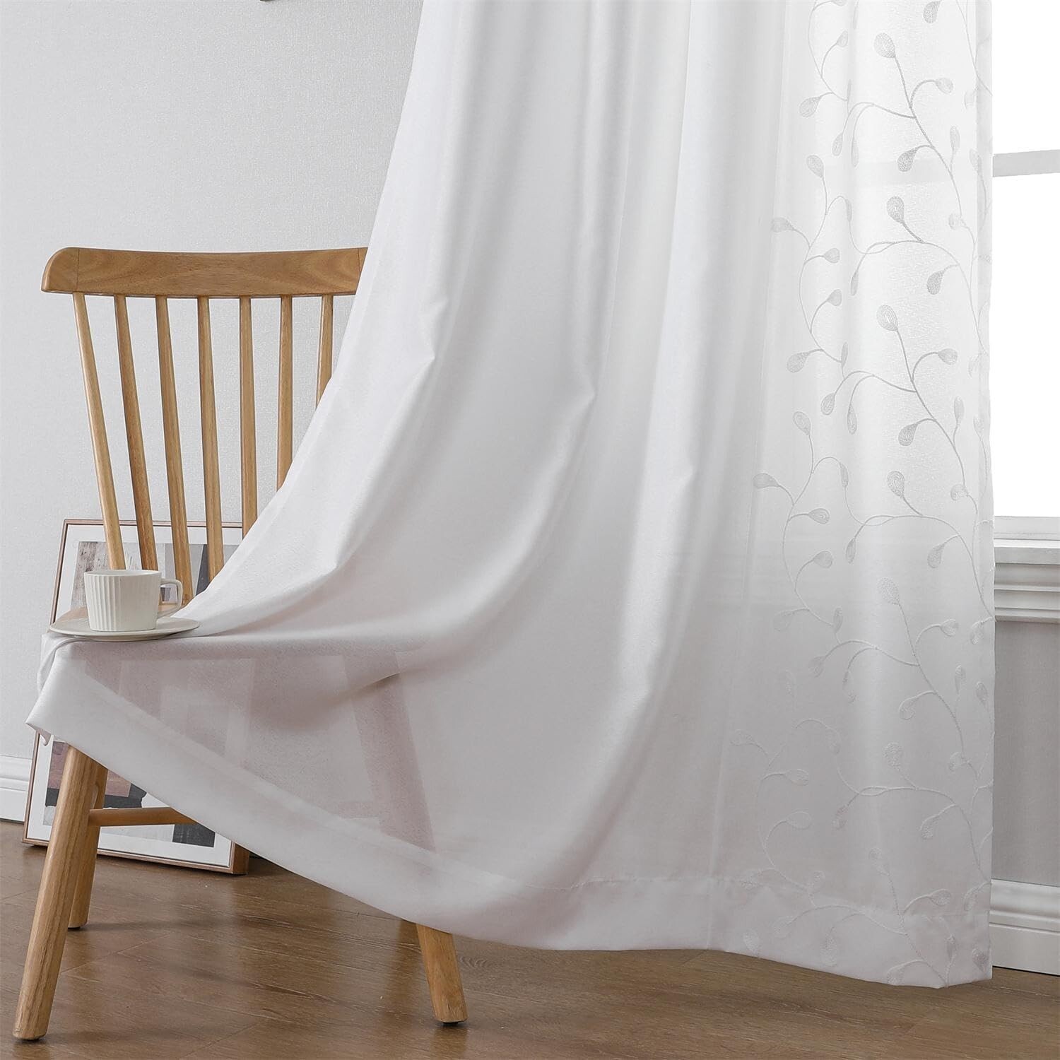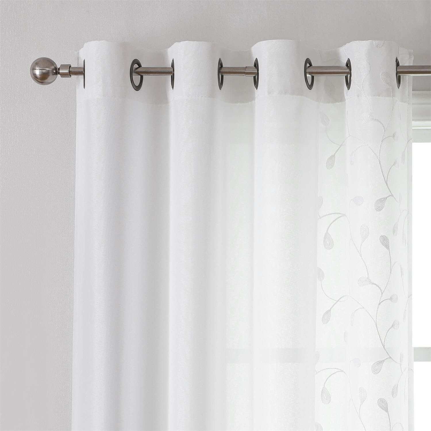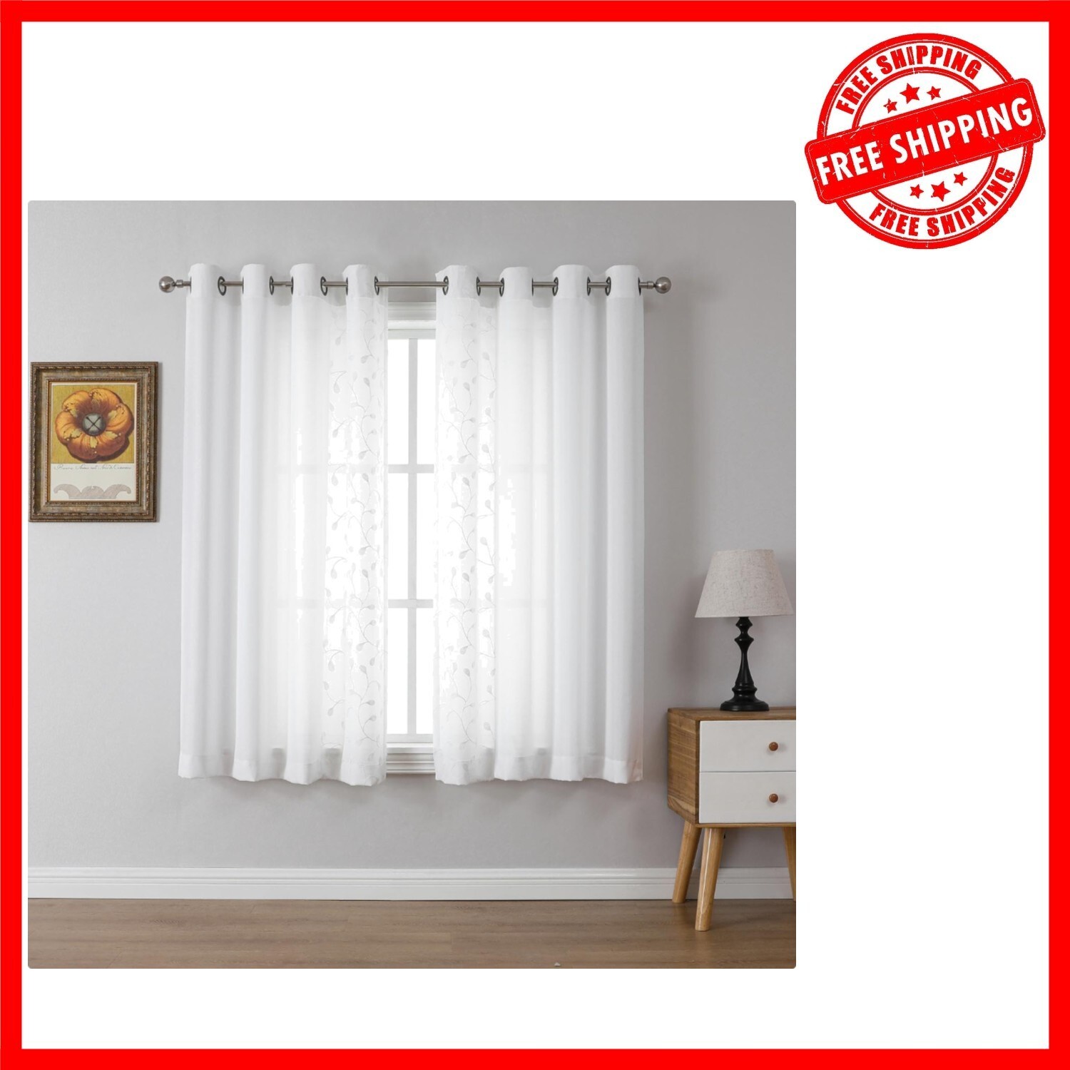 Grommet Style Floral Faux Linen Curtains - Elegant 63" Light Filtering Drapes