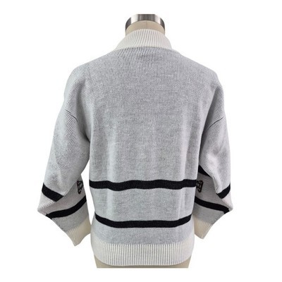 100% acrylic; intarsia knit; 3D embellishment; tartan plaid bow detail; long sleeves; Moments for Marjorie label.