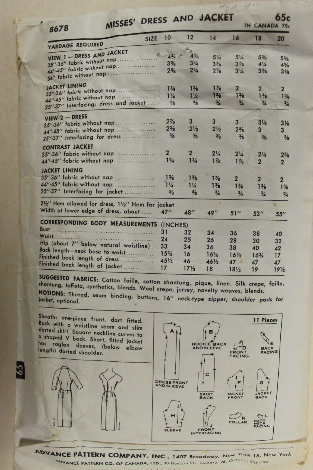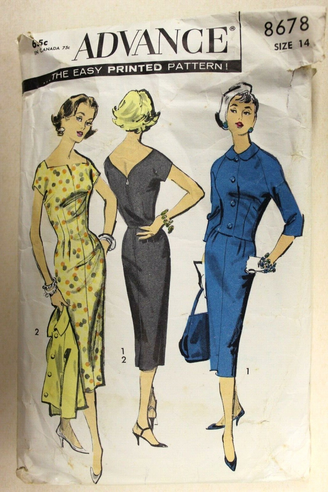 Vtg 1953 Sewing Pattern Advance #8678 Sheath and 39 similar items