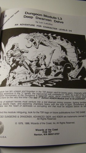 MODULE - L3 - DEEP DWARVEN DELVE *NEW VF/NM 9.0 NEW* DUNGEONS DRAGONS