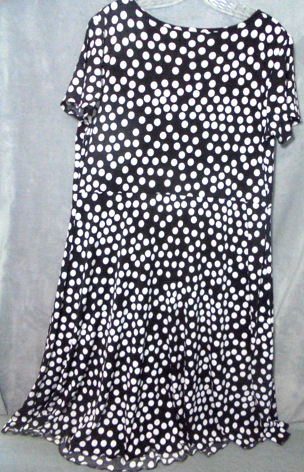 Renuar Collection Womens Large L Black and White Polka Dot Maxi Dress SS