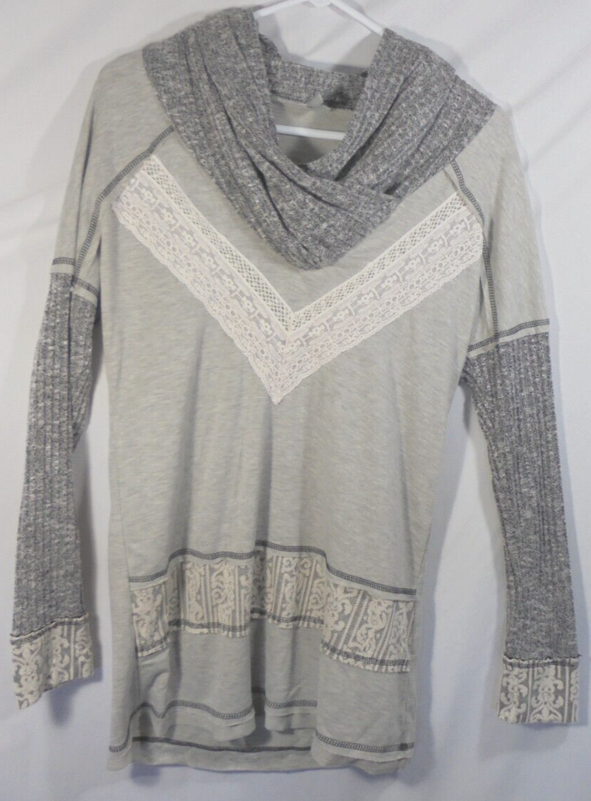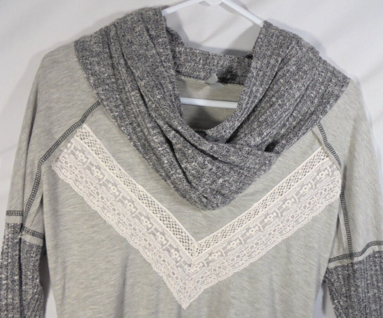 Vanity Womens Small Sweater Sweatshirt Cowl Wrap Neckline Gray White Lace Dressy