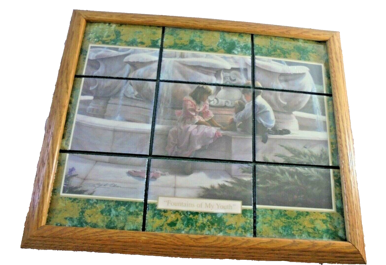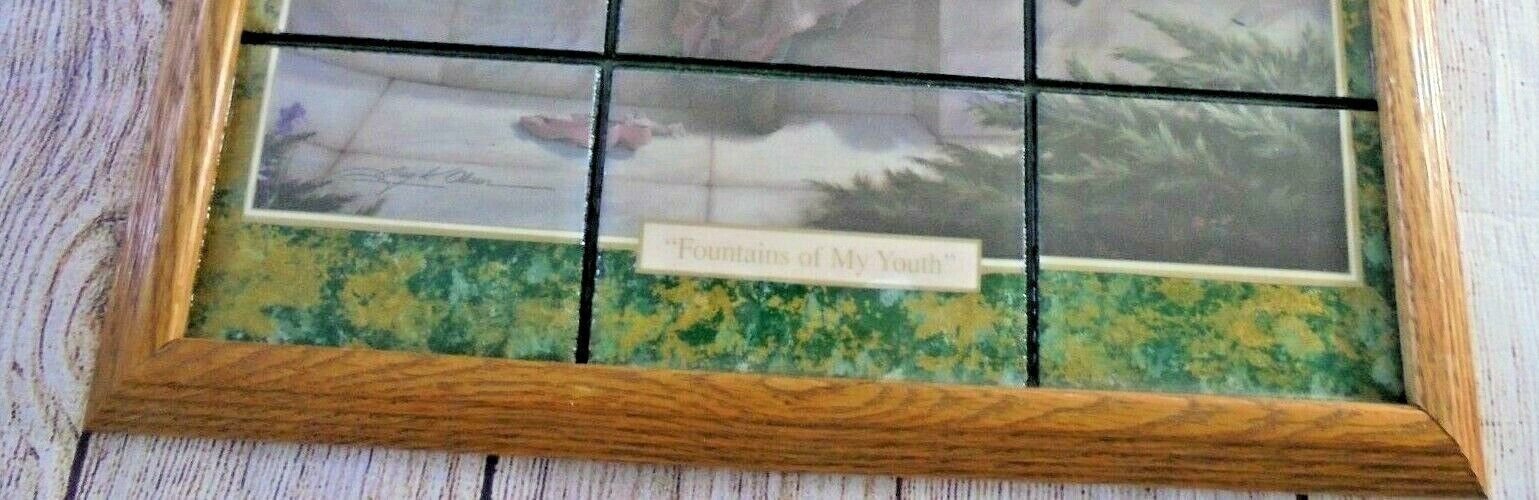 Wall Decor "Fountains Of My Youth" Boy Girl Fountain Framed Tiled Ceramic Art