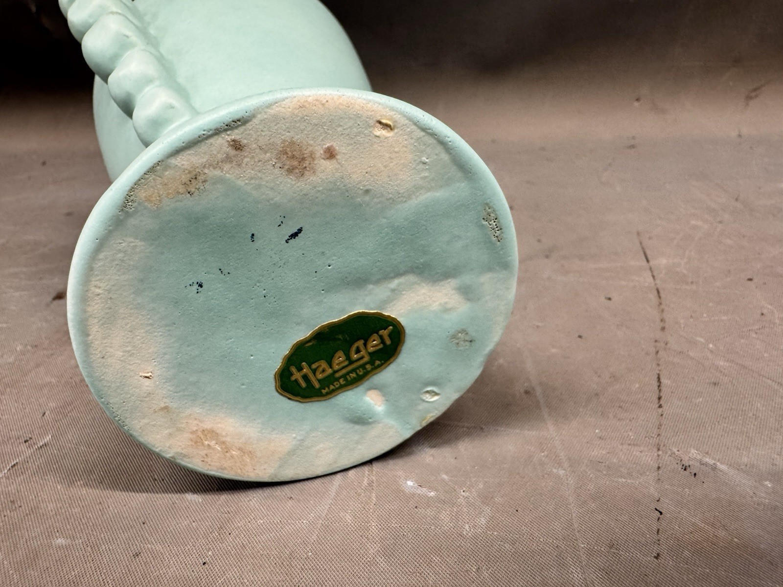 Vintage Haeger Mid Century Modern Aqua Green Vase Flower Plant Pot Matte Finish