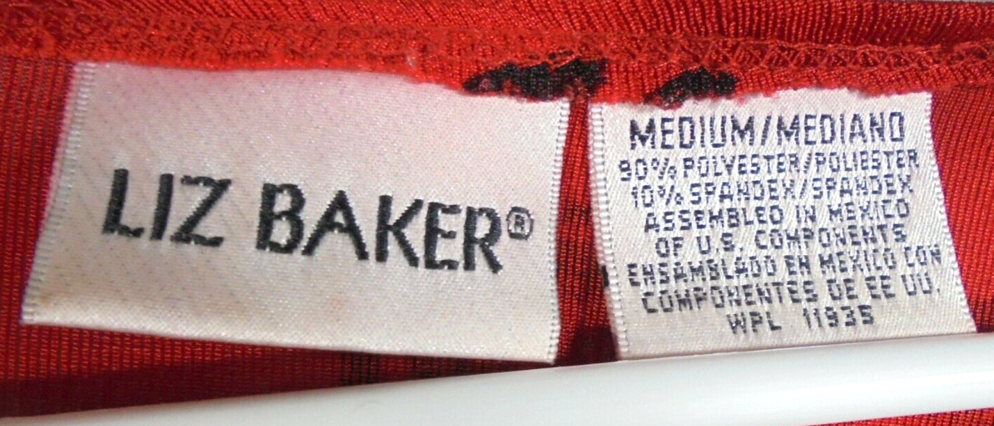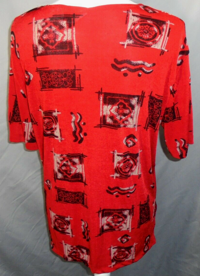 Vintage Liz Baker Women's Medium Short Sleeve Blouse Red Black Abstract Print
