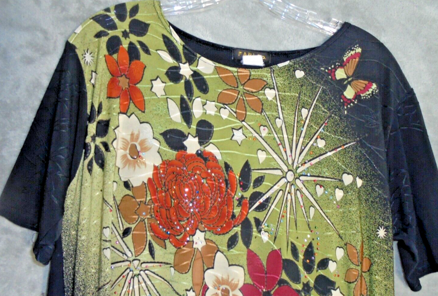 Fabi Co Womens Large Top Embellished Embossed Floral Short Sleeves Stretch Knit