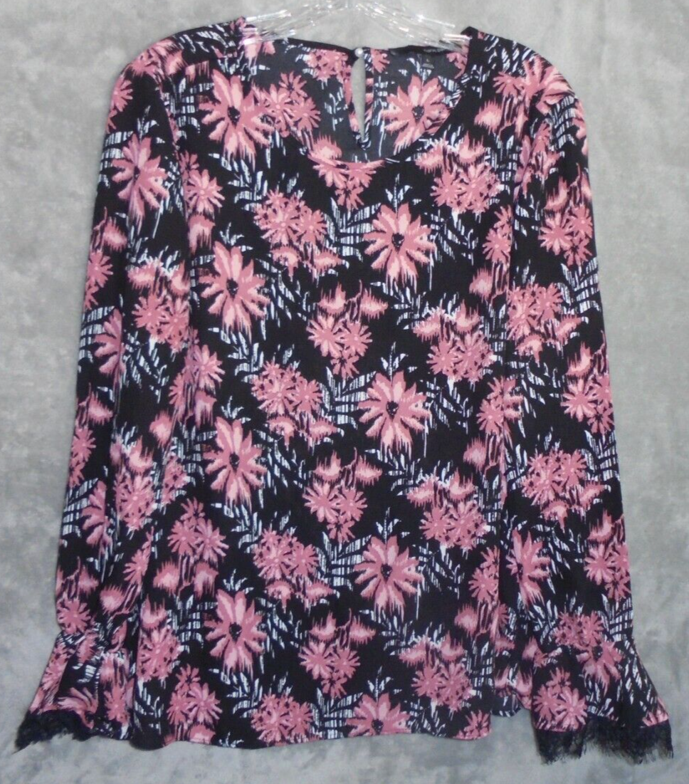 Harve Benard Womens Large L Blouse Floral Long Sleeves Lace Cuffs Peephole Back
