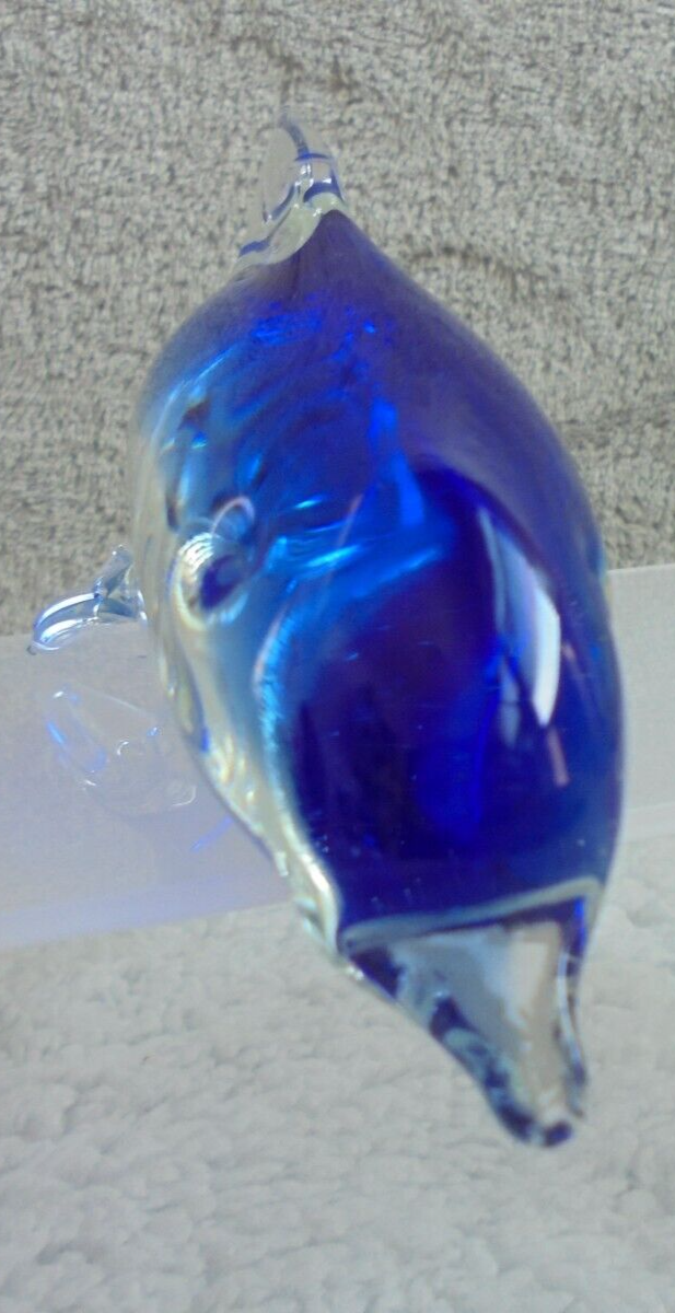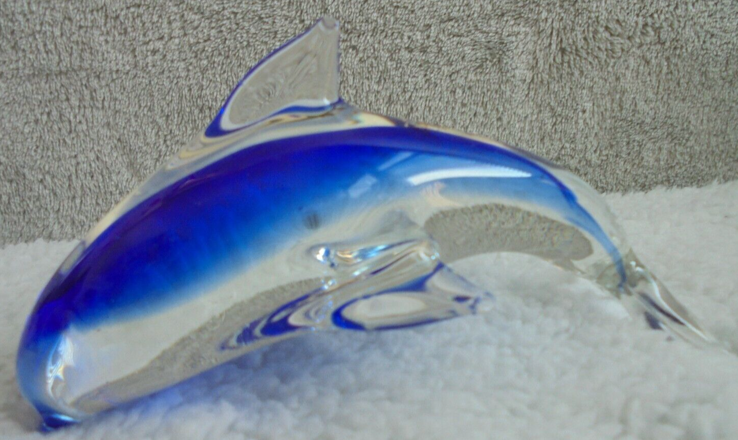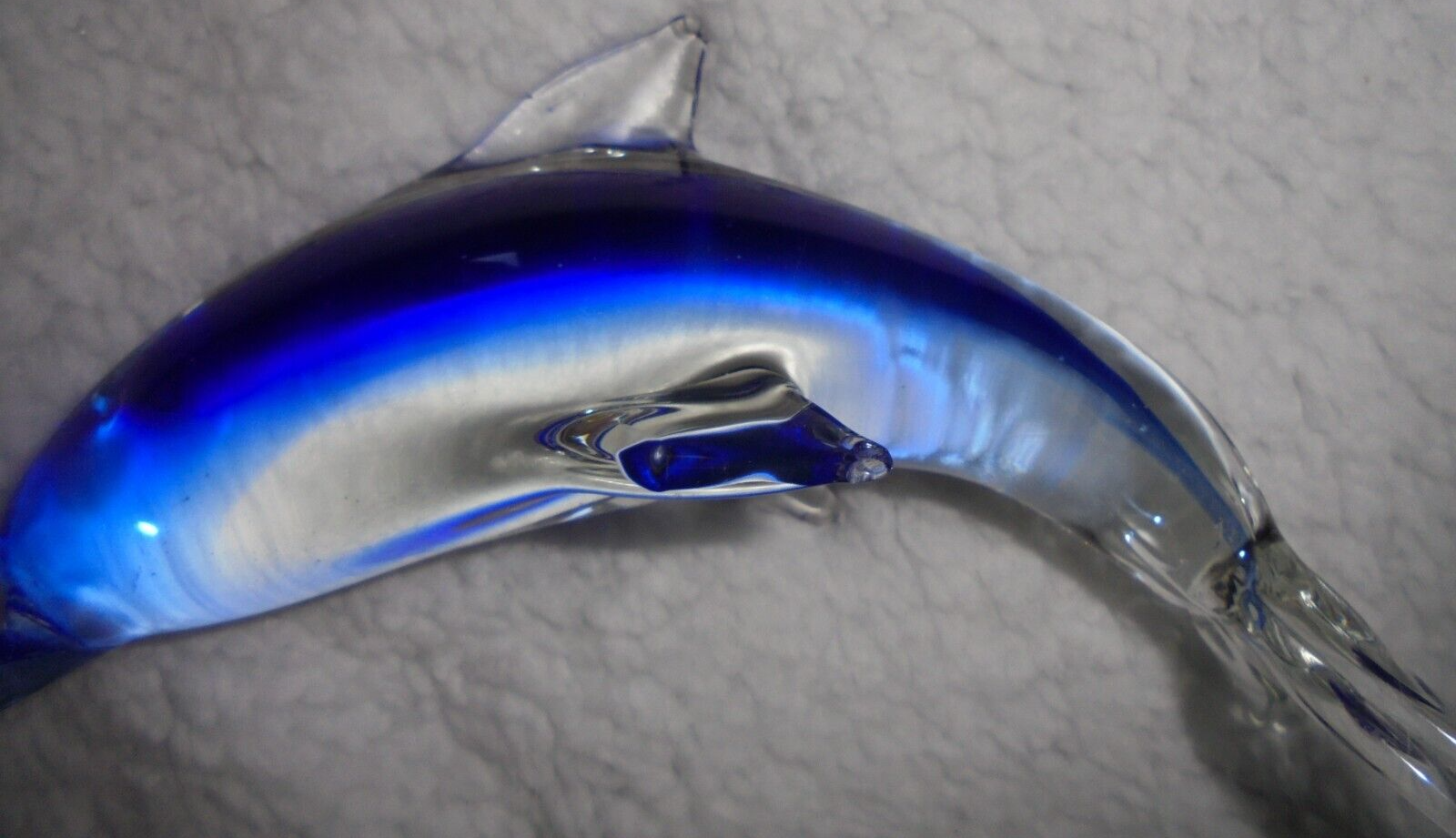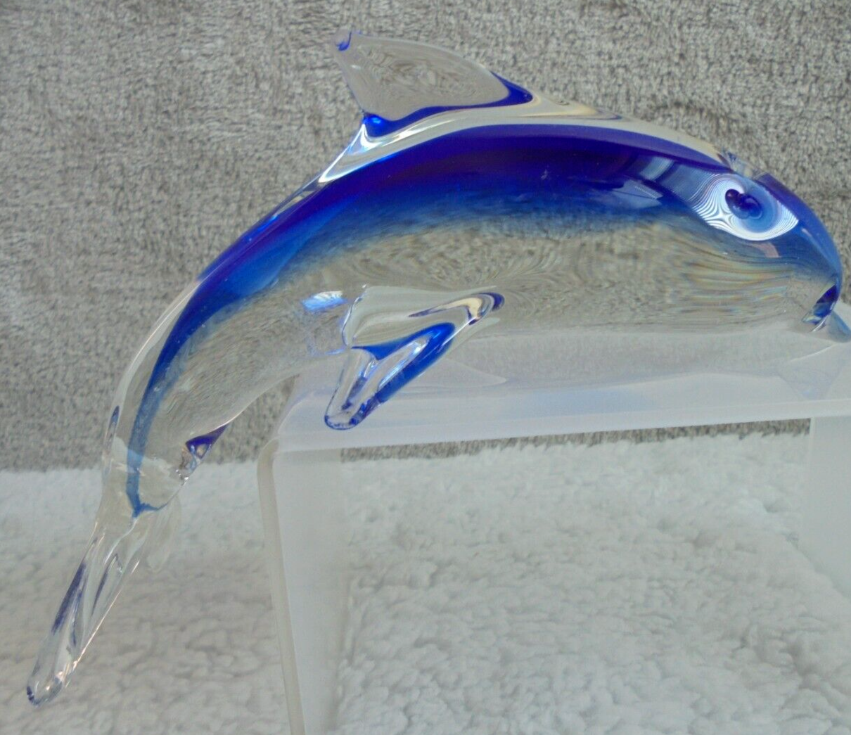 Murano Style Art Glass Dark Blue Clear Dolphin Decorative Figurine 6"