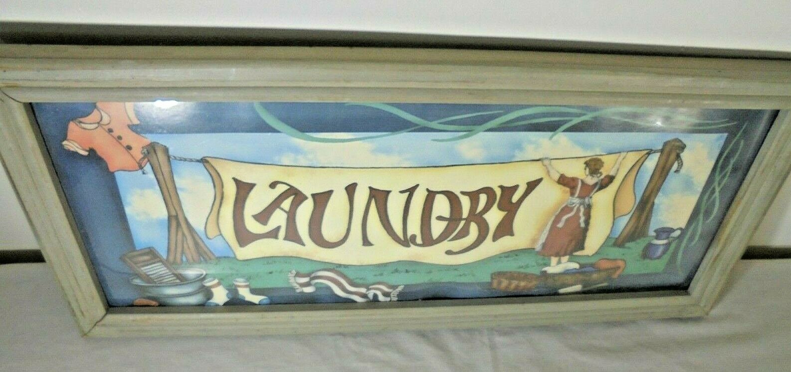 Laundry Room woman hanging laundry clothes line Cottage Farm Cleaners Home Decor
