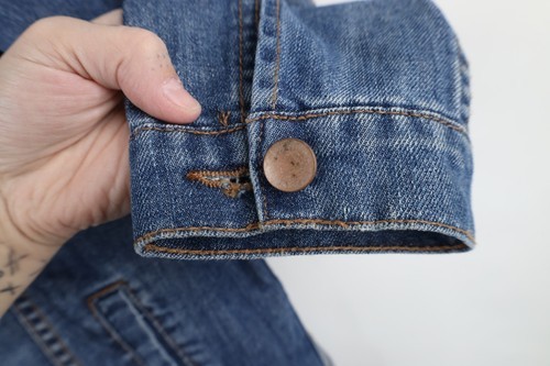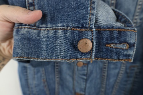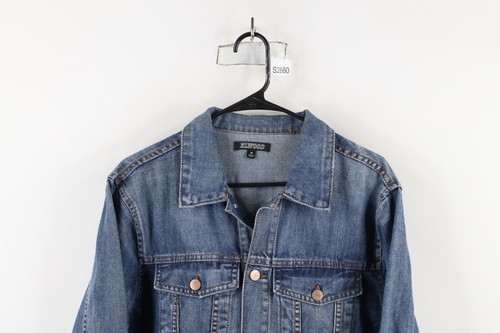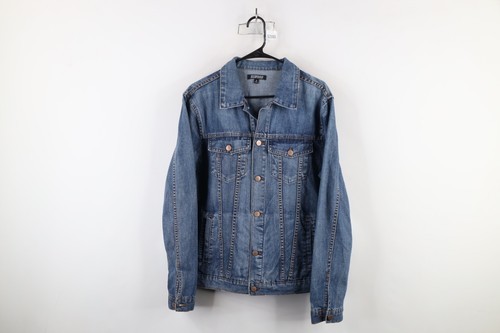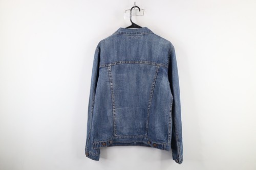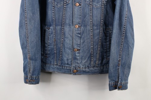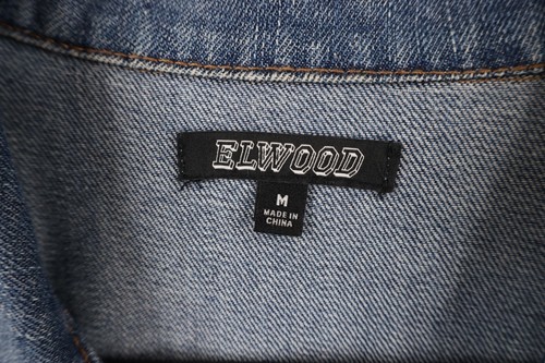 Vintage Elwood Skateboarding Mens Medium Faded Denim Jean Trucker Jacket Blue