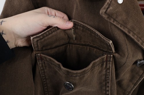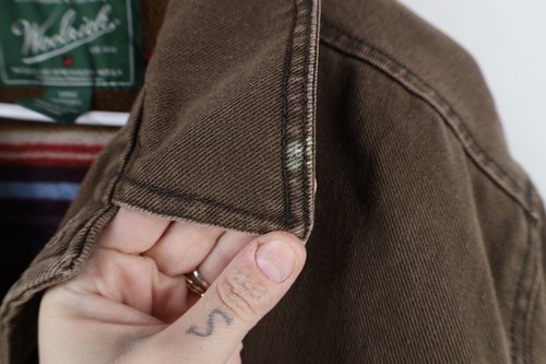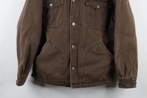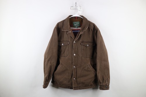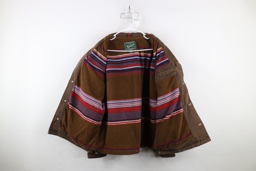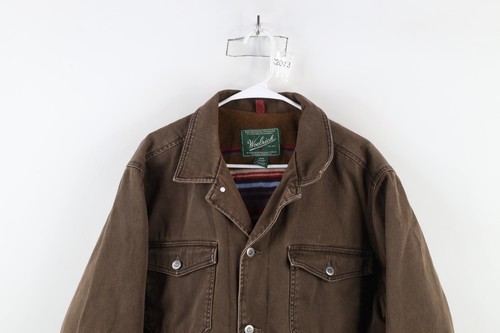 Vintage Woolrich Mens XL Faded Rainbow Fleece Lined Denim Jean Trucker Jacket