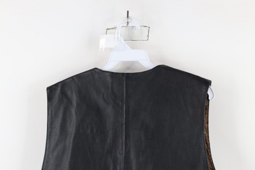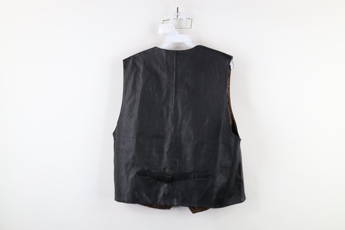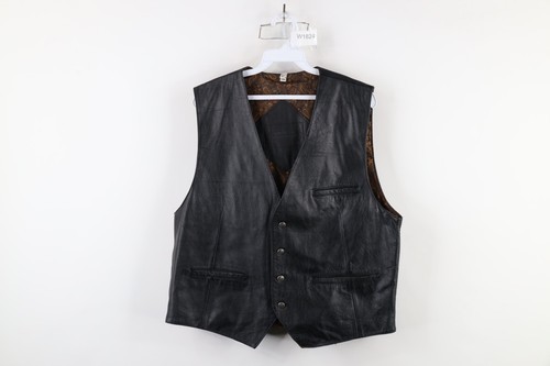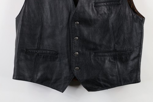 Vintage 90s Streetwear Mens Large Distressed Leather Button Vest Jacket Black