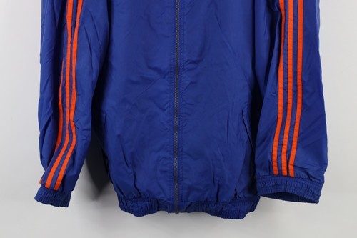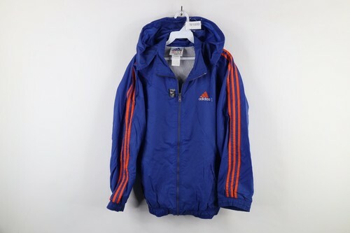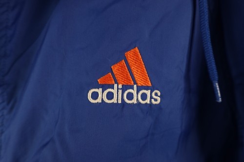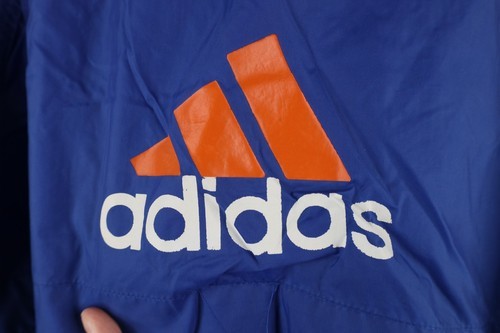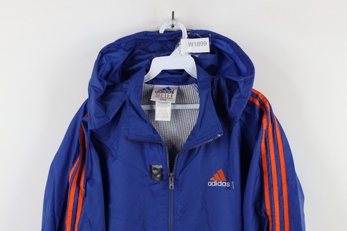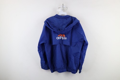 Vintage 90s Adidas Mens XL Distressed Spell Out Hooded Windbreaker Jacket Blue
