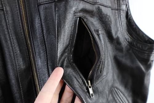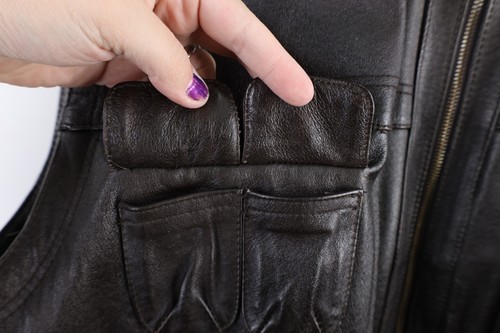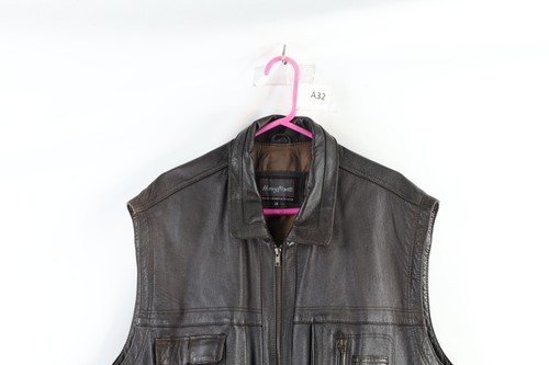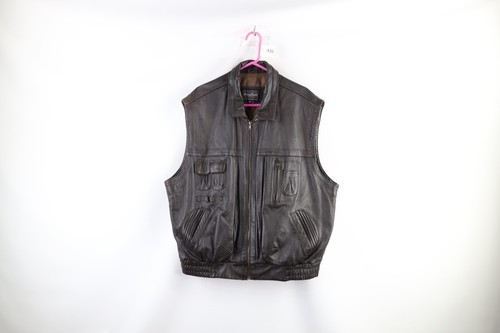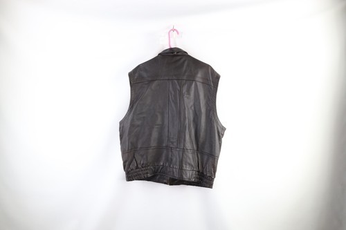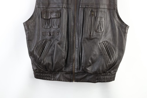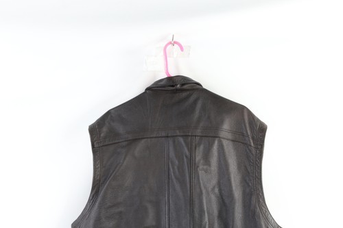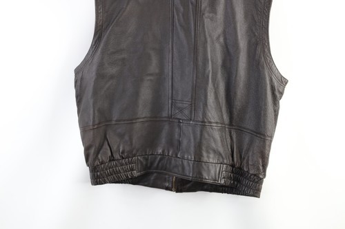 Vtg 90s Streetwear Mens 58 Full Zip Leather Motorcycle Riding Vest Jacket Brown