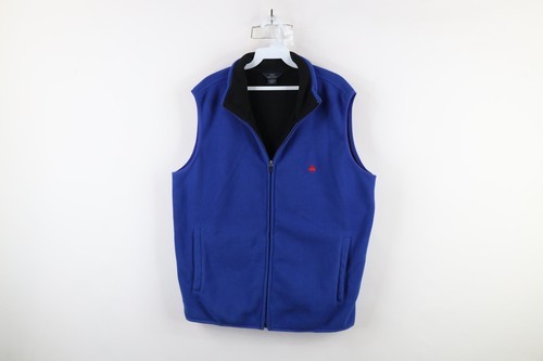 Brooks Brothers Mens Large Distressed Full Zip Fleece Vest Jacket Royal Blue