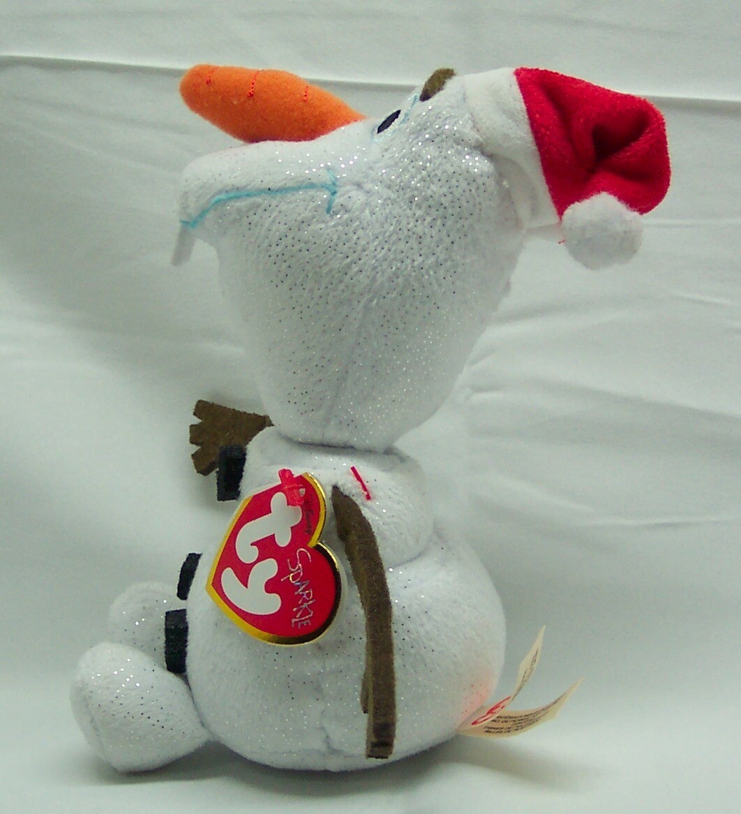 This is a Beanie Babies Frozen OLAF SNOWMAN W/ SANTA HAT Plush Stuffed Animal Toy. Made by TY. It is 6 inches tall. It is in great condition with the tag. It is CLEAN and SO CUTE!. There are no tears, stains or defects. Combine auctions to save on shipping. Please contact me if you need to make other payment arrangements. AG