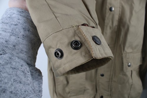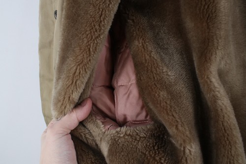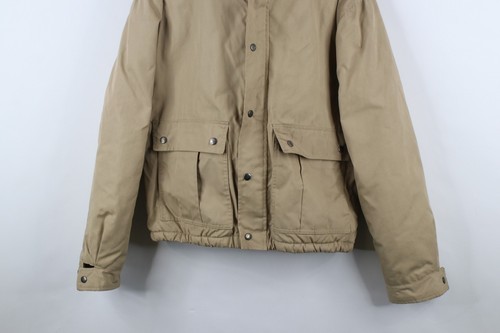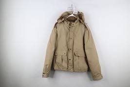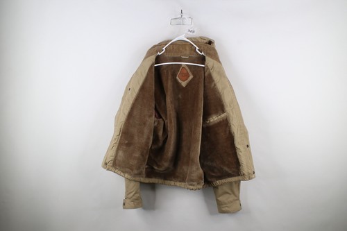 Vintage 70s Skor Mens Large Distressed Fleece Lined Hooded Bomber Jacket Beige