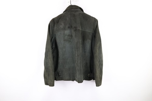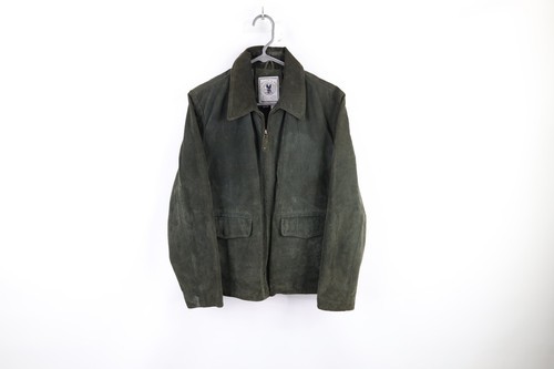 Vintage 90s Streetwear Mens Large Distressed Suede Leather Bomber Jacket Green
